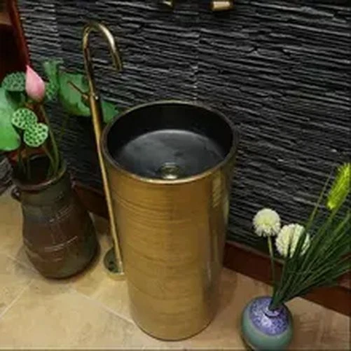 Ceramic Bathroom Integrated Pedestal Sink Handmade Artistic Engraved Line Design Processing: Engraving Special Application: Bathroom Sink Type: Pedestal Sinks Capacity: 12L Faucet Mount: Single Hole Basin Shape: Round Material: Ceramic Brand Name: Unbranded Origin: Mainland China Certification: NONE Package Include: 1 x Pedestal Sinks