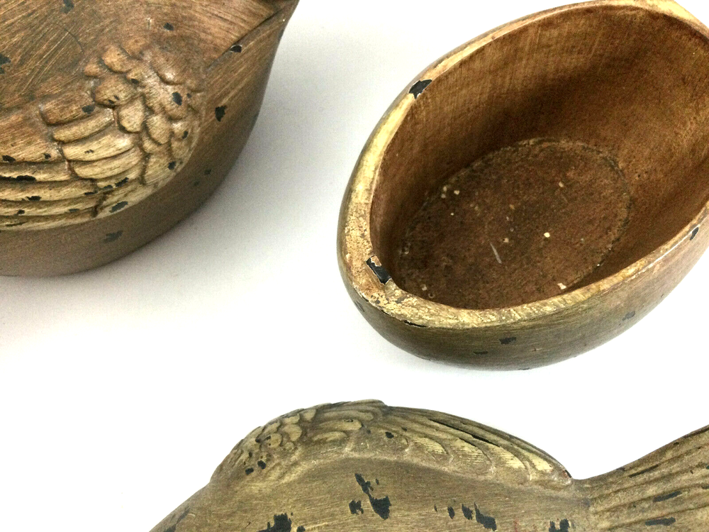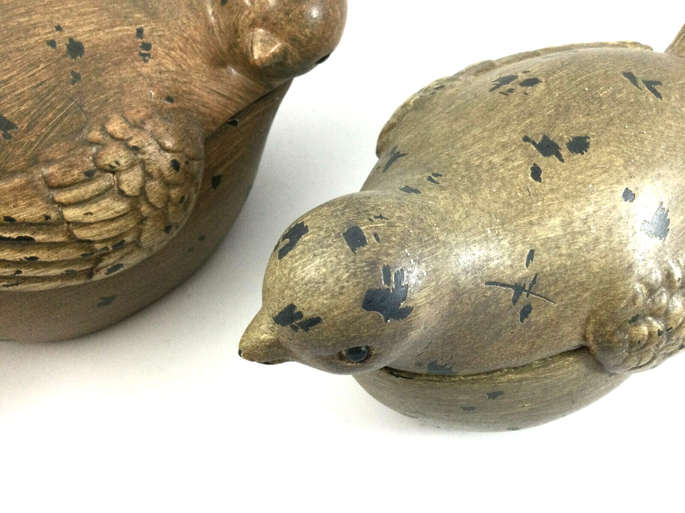 Ceramic Trinket Boxes with Lid Brown Baby Birds. Very good condition, no damage. They are approximately 8" L x 4" H. They also can be used as a candle holder for tea lights. Please check shipping cost, they are heavy! InvN/G/6