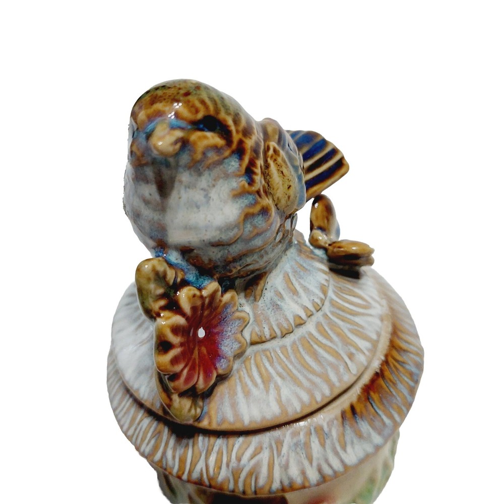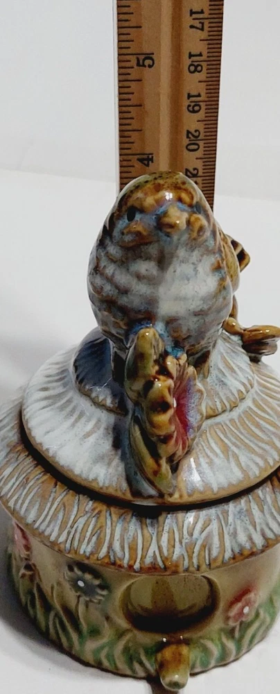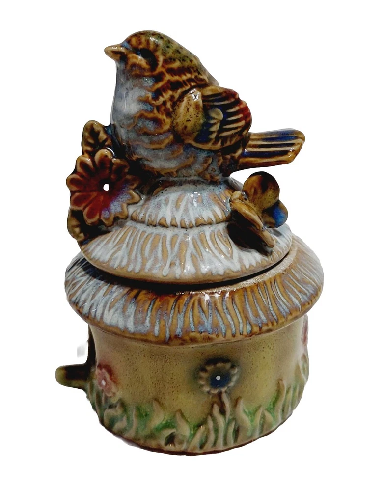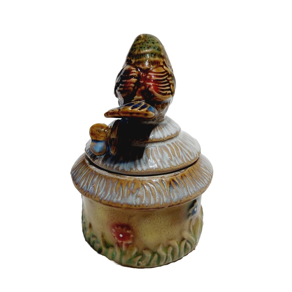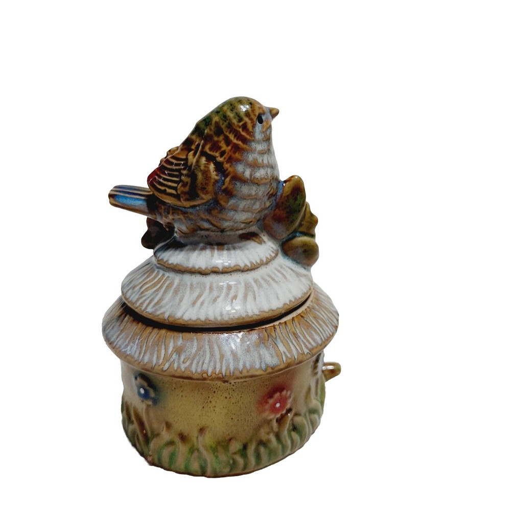 Trinket Box Brown Bird House Jewelry Box Ceramic 4"