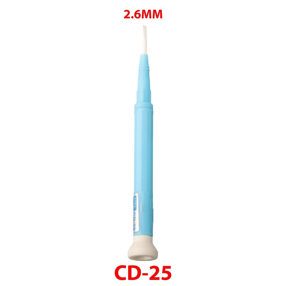 Product Description Feature: *Anti-static plastic handle. *Zirconium ceramic tip, insulated, non-conductive, non-magnetic. *Suitable for high frequency circuit adjustment. *Labor-saving cap, convenient to use. *Ceramic Screwdriver only,other accessories demo in the picture is not included. Specification: *Model: CD-15, CD-20, CD-25, CD-100 *Material: Plastic, Ceramic *Color: Blue + White *Tip size: CD-15: 1.3 x 0.4mm Flat Point Slotted Screwdriver CD-20: 1.8 x 0.4mm Flat Point Slotted Screwdriver CD-25: 2.6 x 0.4mm Flat Point Slotted Screwdriver CD-100: 2.0 x 0.4mm Cross Point Slotted Screwdriver *Full Length: app.113mm/4.45in *Quantity: 1/4Pcs Package Included: 1/4pcs x Ceramic Screwdriver Notes: 1. The real color of the item may be slightly different from the pictures shown on website caused by many factors such as brightness of your monitor and light brightness. 2. Please allow slight manual measurement deviation for the data. Payment Payment must be completed within 5 days. If you have any problems about payment, please contact us via ebay message. Delivery details We only ship to confirmed ebay Order addresses. Please comfirm that your Order address is in line with your shipping address. Please kindly note that the c ombined shipping is not provided because the shipping fee is calculated by weight. Also, the each additional item means exactly the the same color and size. It takes about 7 -15 working days to US; about 10-30 working days to other countries. Transit time may be a little delayed because of the bad weather and customs inspection . If you do not receive your item within 30 working days since payment finished, please contact us immediately for further assistance. Contact us We strive for 100% customer satisfaction! Positive Feedback is very important to us. If you have any questions, p lease feel free to contact us via "Ask seller a question" . We will reply your email within 24 working hours.