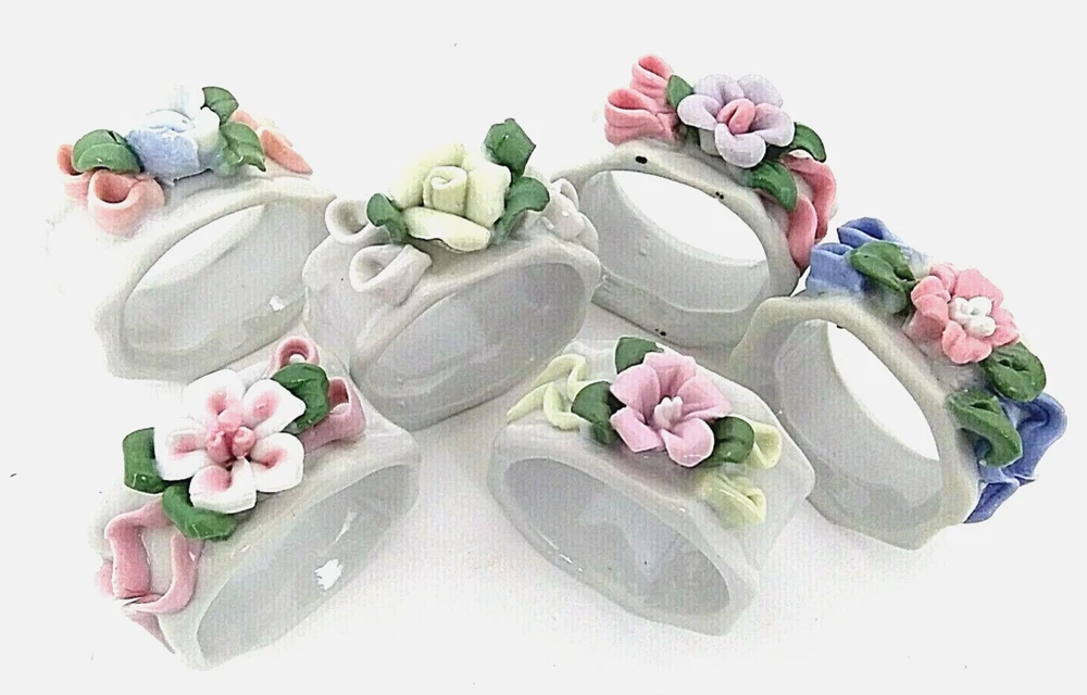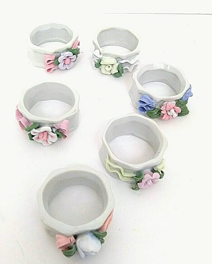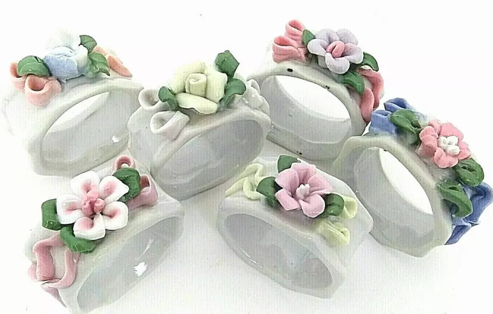 Ceramic Napkin Ring Holders White Green Pink Flower Design Set Of 6 Packaged NEW Please Read The Return Policy,Descriptions And 1 Day Handling Times Carefully Before Purchasing *** ATTENTION !!! My Best Offer Is Set At $3.00 To $10.00 Less Than The Fixed Price *** *** All Photo's Are Of The ACTUAL Item(S) That You Will Receive Guaranteed *** *** Ships From The U.S *** (1 Or Same Day Handling Time ) **PLEASE READ!! *** Saturday-Cut Off Handling Time Is 7 Pm Eastern Standard Time(Will Ship On Monday) Sunday - Cut Off Handling Time Is 7 PM Eastern Standard Time(Will Ship Next Day On Monday) Mon.-Fri. - Cut Off Handling Time Is 1 PM Eastern Standard Time(If Ordered After 1 PM Will Ship Next Day) *** If Order On A Major Holiday We Will Ship The Day When The Post Office Reopens *** *** Ships USPS Priority Mail Package Delivery (Reg.Box 6x6x6) *** (U.S) *** Ships Ebay International Standard Delivery (Reg.Box 6x6x6) *** ( International ) Item Description: New/Open Box Ceramic Beautifully Hand Crafted Hand Made Set Of 6 Flower Design **Be Sure To Inspect Your Item Immediately Upon Arrival Please Leave Positive Feedback If You Are Happy And Satisfied With your Purchase If By Any Chance That The Item Is Not As Described Please Contact Us So That We Can Fix It...Please Report The ERROR To Us. Condition- ** NEW/Open Box Never Used Has Just Been Sitting In Storage *Location : From A Smoke Free And Pet Free Home ! *Payment : ALL TRANSACTIONS MUST BE HANDLED THROUGH EBAY ONLY!! *Shipping : We Ship All Items 1 Or Same Business Day Of Payments Clearing (Including Weekends And Holidays) We Ship Worldwide * Return Policy:Please Read Carefully !! We accept a return for any reason during 30 days after receiving the item Undamaged,in resalable condition and original package for a refund less ALL shipping costs plus restocking fee 10%. Items That are Broken,Taken Apart,Scratched from a smoking environment will not get a refund. Please be gentle with the item. We Provide you with Descriptions; If you need more information about the item ..Please don't hesitate to ASK ! We will be more than happy to help you to make the right purchase. HAPPY AND SATISFIED CUSTOMERS ARE OUR # 1 PRIORITY !!! ***** Contact Us ****** Please Feel Free to Contact us with Any Questions about the Item Thank You For Stopping By and Have a Great Day!!