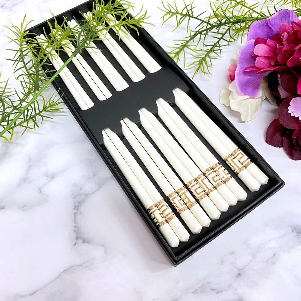 Ceramic Porcelain Chopsticks Set with Gold Geometric Design 5 Pairs