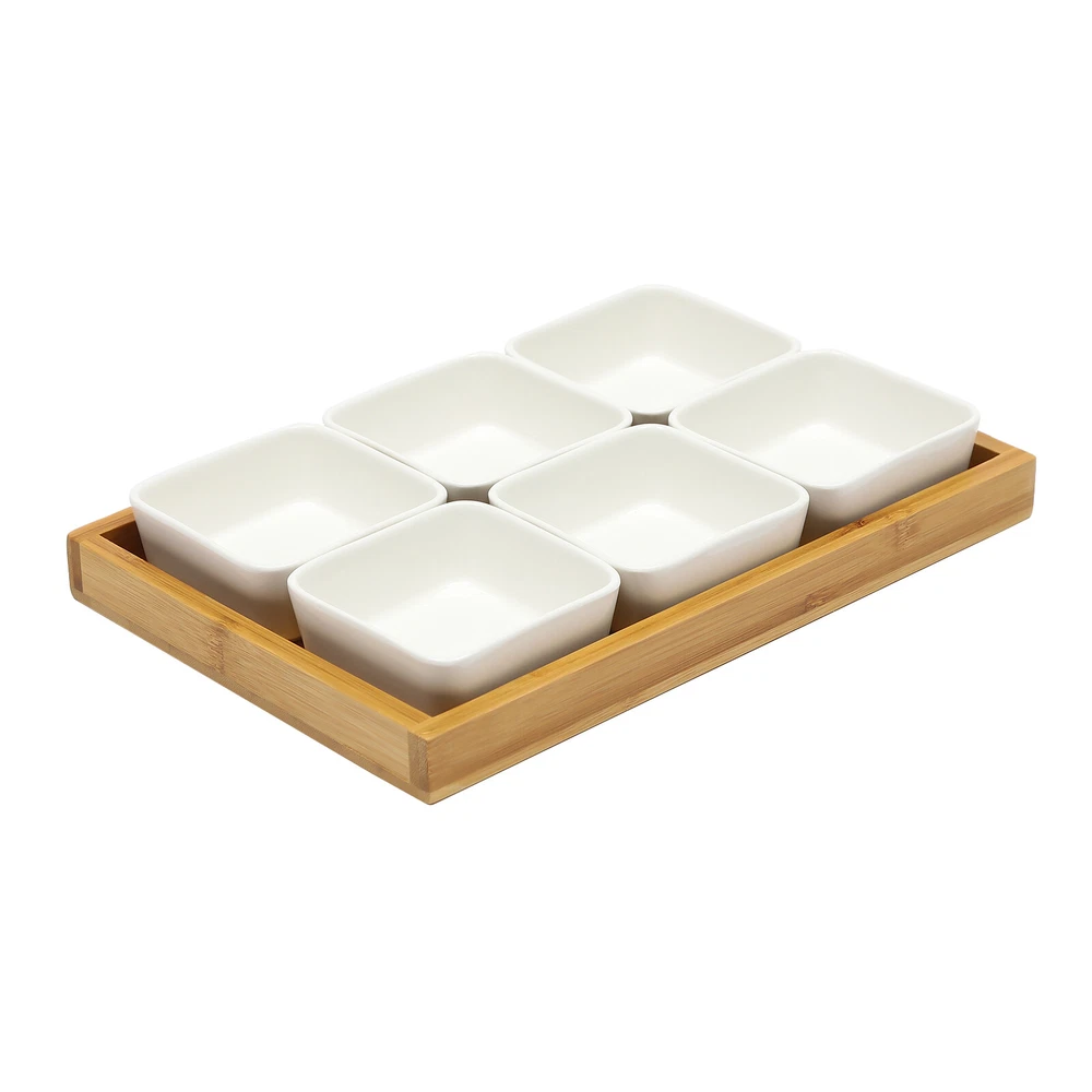 Description The ceramic snack serving tray is a very practical and beautiful household item. It not only allows people to enjoy delicious fruits and snacks but also allows them to enjoy a good life. Whether used at home or as a collector's item, the ceramic snack serving tray is a very worthy item to own. 6 ceramic bowls with lids will keep your fruit and snacks always fresh and clean, it's an indispensable companion for snack parties! Ceramic Snack Serving Tray Set with Bamboo Lids - 6 Piece Platter Description Ceramic Snack Serving Tray with Lids Elevate Your Snack Experience! ??✨ Transform your gatherings with our stunning ceramic snack serving tray! Perfect for showcasing fruits, snacks, and more, this tray is not just functional but also a beautiful addition to your home decor. Key Features Premium Quality: Crafted from high-quality ceramic and bamboo wood, this tray is designed for durability and long-lasting use. Elegant Design: The bright white ceramic finish adds a touch of sophistication to your dining area, making it a perfect centerpiece for any occasion. Generous Capacity: This six-piece set (11.02 × 7.56 × 1.61 inches) is spacious enough to hold a variety of snacks, from fruits to candies, making it ideal for parties and gatherings. Freshness Guaranteed: Each ceramic bowl comes with a lid to keep your snacks dust-free and fresh, allowing you to enjoy them worry-free. User-Friendly: The rounded handles on the lids make it easy to access your snacks, while the raised rim ensures stability when serving. Effortless Cleaning: The open design of the bowls (3.54 × 3.54 inches) allows for easy cleaning—just wipe or rinse! In-Depth Description Our ceramic snack serving tray is the perfect blend of style and practicality. Whether you're hosting a summer BBQ, a holiday party, or simply enjoying a cozy night in, this tray will impress your guests and elevate your snack game. The six included bowls are perfect for serving a variety of treats, ensuring that everyone finds something they love. Not only does this tray serve a functional purpose, but it also enhances the aesthetic of your dining space. Its elegant design makes it a wonderful gift for weddings, birthdays, or any special occasion, showcasing your thoughtfulness and taste. Specifications Material: Ceramic, Bamboo Color: White, Wood Process: High-Temperature Firing Assembly Required: No Shape: Square Microwave Oven Safe: Yes Number of Pieces: 6 Gross Weight: 2 kg / 4.41 lbs Net Weight: 1.7 kg / 3.75 lbs Product Size: 28 × 19.2 × 4.1 cm / 11.02 × 7.56 × 1.61 in Single Bowl Size: 9 × 9 × 4.1 cm / 3.54 × 3.54 × 1.61 in Package Size: 30 × 21 × 5.5 cm / 11.81 × 8.27 × 2.17 in What’s in the Box 1 × Ceramic Snack Serving Tray Usage Tips Use the tray for serving a variety of snacks such as fries, dips, candies, olives, nuts, fruits, and appetizers. For best results, keep the tray in a cool, dry place when not in use. Care & Maintenance Handcrafted ceramic may have minor imperfections, which are normal and add to its charm. Avoid using abrasive cleaning tools to prevent scratches. A soft cloth or gentle rinse is recommended. Warranty / Shipping Info / FAQ If you encounter any issues after your purchase, please reach out to us before opening the box. We are committed to resolving any problems promptly. Call to Action Don’t miss out on the chance to enhance your dining experience! Add the Ceramic Snack Serving Tray to your collection today and impress your guests with style and functionality! ?? tu1 Payment Delivery details Terms of sales About us Contact us Payment We accept ebay payment 。 Fees such as import duties, taxes are not included in the item price or shipping costs. These charges are the buyer's responsibility. Delivery details Shipping: 2-9 working days to: USA Terms of sales We maintain high standards of excellence and strive for hundred percent customer satisfaction. Feedback is very important to us. We hope that you contact us immediately before you give neutral or negative feedback, so that we can address your concerns. It is impossible to address issues if we do not know about them! About us Your satis faction is our ultimate goal. We work hard to earn your trust and future business. Our certified technicians have tested each item before shipping. The unit comes with 1 year limited warranty on all manufacturing defects. a) If you receive a defective item, you may return it or ask for a discount. Please contact us within 14 days after you receive the package. b) What you returned must be intact and in its original packaging as re? u. Customer is responsible for shipping costs of the returned item. c) We will cover the cost of shipping back t with the shipping rate indicated in the registration page. We will send you a new unit or refund the full payment you paid. Thank you. Contact us Business Hour Business Hour: Monday To Friday: 8:30 AM to 5:00 PM (Beijing China time) Due to time zones, our reply to your questions may not be immediately. But within above working time, we will reply your email within 24 hours. If it's non-workdays, please kindly be patient and wait till Monday. Please contact us with ebay message. Please feel free to contact us if you have any questions. Monday To Friday: 8:30 AM to 5:00 PM (Beijing China time) Due to time zones, our reply to your questions may not be immediately. But within above working time, we will reply your email within 24 hours. If it's non-workdays, please kindly be patient and wait till Monday. Please contact us with ebay message. Please feel free to contact us if you have any questions.