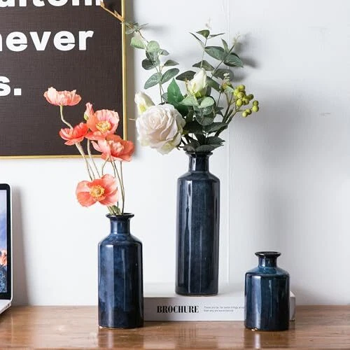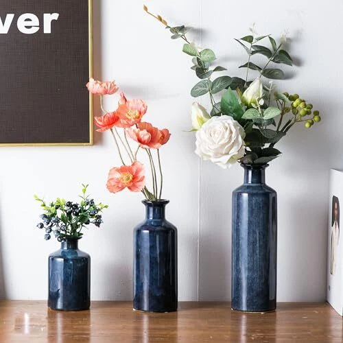 Return Policy Fast Delivery Trusted seller Blue Ceramic Vase Set of 3, Modern Rustic Farmhouse Decor, Glazed Decorative Small Vases, Minimalist Home Decor for Living Room, Fireplaces Decor, Bookshelf, Table Decoration Product Description Stylish and Modern Rustic Design: This set of 3 blue ceramic vases features a minimalist design with a smooth, glazed finish, perfectly blending modern and rustic farmhouse aesthetics. The striking blue color adds vibrancy to your home decor, making these vases an eye-catching addition to any room. Versatile for Any Space: These decorative vases are ideal for a variety of spaces, including your living room, bookshelf, dining table, or fireplace mantel. Available in different sizes, they can be displayed together or separately, allowing you to personalize your decor to suit any occasion or interior style. Durable Glazed Ceramic Construction: Made from high-quality ceramic with a durable glazed finish, these vases are built to last. The smooth and glossy blue surface ensures they maintain their beauty for years, while the sturdy ceramic material makes them a lasting part of your home decor. Perfect Size for Tabletop or Shelf Display: With various sizes, this set includes a large vase (3 inches wide, 10 inches tall), a medium vase (3 inches wide, 7.5 inches tall), and a small vase (3 inches wide, 5 inches tall). These proportions make them ideal for adding charm to smaller spaces without overwhelming the room. Ideal for Any Occasion or Gift: This set of decorative vases is a perfect addition to your home, whether for everyday use or special occasions. They also make a thoughtful gift for friends and family who appreciate elegant home decor. Shipping Returns Payment Shipping Shipping is FREE to all addresses other than APO/PO boxes in the lower 48 states. All our stock ships from US-based warehouses. Shipped via USPS or UPS (depending on location and package weight) Unless stated otherwise, all orders will ship within 24-72 hours of your payment being processed. Check our feedback to see the great reviews of FAST shipping we offer. Returns Seller does not accept returns Payment We currently accept payment via eBay managed payments only. Once payment is cleared, we will dispatch your shipment within 1-3 business days. Please refer to the "Shipping" tab for more information regarding shipping speed to your destination.