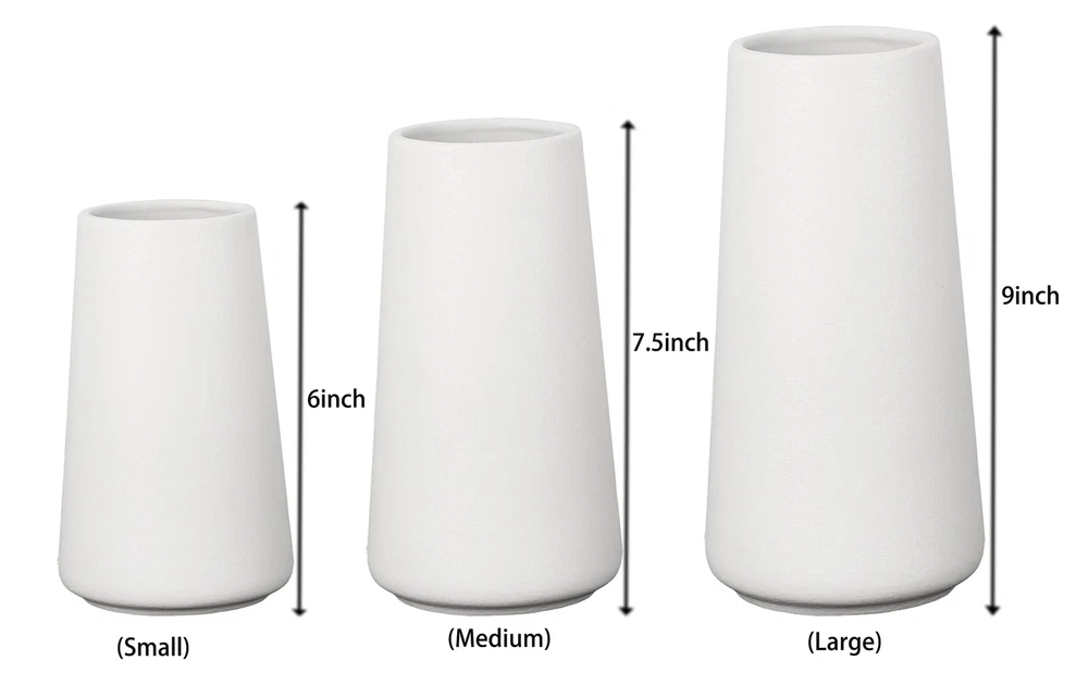 Ceramic White Vase, Simple Vases for Lavender Pampas Grass Dried Flowers Plants, Frosted Elegant Vase for Modern Table Shelf Wedding Home Decor (Medium) VASE SIZE: 3.7 X 7.5 inch, vase's opening size are 2.3 inch.Perfect size and shape for those little bunches of flowers from the supermarket, Or paired with 13-18 inch artificial flowers would be very pretty. Simple Stylish: This vase is suitable for a wide range of floral arrangements, including pampas grass, dried flowers, and more. Use it as a centerpiece on your dining table or coffee table, or display it on a mantle, bookshelf, or entryway table. Material: Made of high-quality fine ceramic material, thick, strong and high-grade. The perfect gift for Mother's Day, Valentine's, Easter, Halloween, Thanksgiving, Christmas. VERSATILE USE: This simple vase is suitable for coffee table, dining table, bookcase, shelf, mantel, kitchen, living room, bedroom, entryway. A few simple vases with some bouquets set up around your patio room will look great. High-quality packaging: packaging content 1X vase. The simplicity of the vase doesn't detract from the colors of the flowers. will perfectly decorate your space and add a modern flavor, Beautiful Home Decor. Shipping We offer FREE shipping on all orders! We use a selection of shipping services such as UPS, FedEx, USPS etc. We only ship to the lower 48 states, no APO/FPO addresses or PO Boxes allowed. Local pickups and combined shipping options are not provided at this time. Return You can return a product for up to 30 days from the date you purchased it. Any product you return must be in the same condition you received it and in the original packaging. Please keep the receipt. Payment We accept payment by any of the following methods: PayPal Please pay as soon as possible after winning an auction, as that will allow us to post your item to you sooner! Feedback Customer satisfaction is very important to us. If you have any problem with your order, please contact us and we will do our best to make you satisfied. Contact Us If you have any queries, please contact us via ebay. We usually respond within 24 hours on weekdays. Please visit our eBay store to check out other items for sale! Thank you for shopping at our store.
