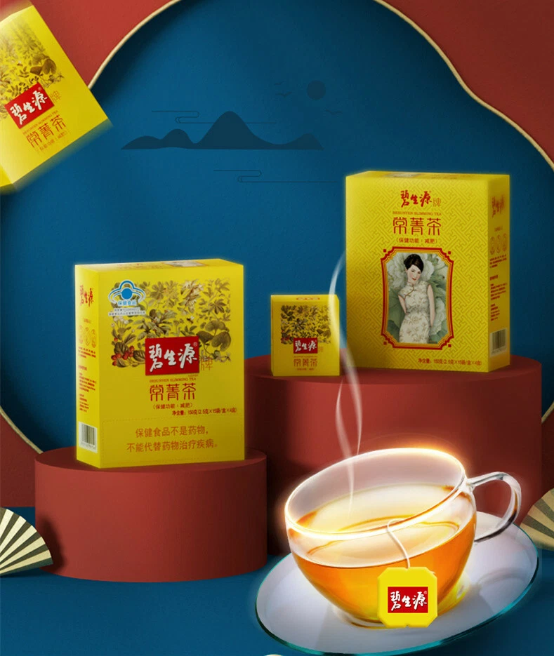 BESUNYEN SLIMMING TEA Bishengyuan Burn Fat and Lose Weight Tea Package: 2.5g*15 bags/small Box, 4 small boxes / big box, Total 150g Valid: 18 months, always New Produce Date Update Ingredient: Green tea, honeysuckle, semen cassiae, lotus leaf, Gynostemma, hawthorn, pure honey, senna and etc. Description: It is made with traditional Chinese herbal essence, extract anti-fat material using the advanced extraction technology from a number of herbs. So that an increase of 20 times the weight-loss results, especially have effect on eliminating the fat on abdonen and waist part. Function: The Bishengyuan slimming tea effectively removes the intestinal fat oil, accumulated stool, toxins and other harmful substances which fat causing materials. It help you to extract the oil that day to eat. And the anti-fat material resolve stubborn fat cells, making them transformed into energy consumed. Then the body will feel a little heat, drink plenty of water in order to facilitate the discharge of oil. Usage & Dosage: Pouring 150ml boiling before meal and then pouring 150ml boiling water after meal and then drink it. Take 1-2 bags every time, twice a day. Package: 4 Boxes, One Box include 15 bags, 2.5g/bag, Total 150g. Kindly Reminders: 1. Do not use if you're pregnant or breeding. 2. Do not drink the other beverage within one hour of taking slimming tea; 3. Aviod cold food as much as possible. 100% Natural Green Food No Any Artificial Addictives or Chemical Additives Two types of packaging are randomly shipped.