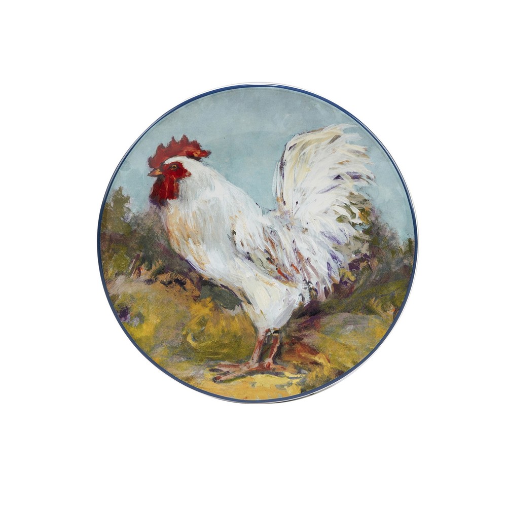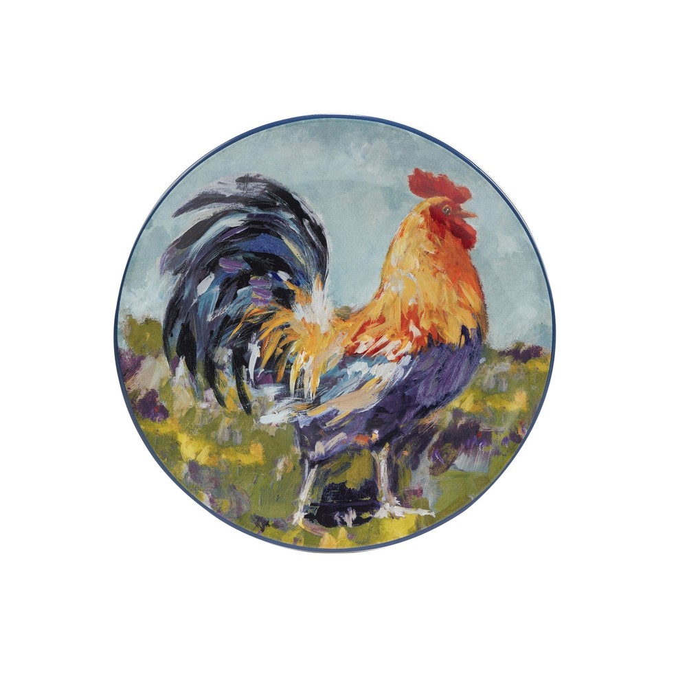 Certified International's Rooster Meadow Set of 4 Salad Plates features colorful roosters in a countryside scene. The 4 assorted mix and match roosters are reproduced on each ceramic Salad Plate from the original art painted by the popular designer Susan Winget. Each 4 pc. set includes 4 -9" diameter Salad Plates for your special table. Makes a beautiful display for your hutch or walls. Coordinating dinnerware, serveware, storage and 3-d items are available to complete the farmhouse look in your home!Features:Includes: Rooster Meadow 9" salad/dessert plates, set of 4Made with durable earthenwarePerfect for casual diningColorful rooster decorGreat idea for shower or housewarming giftsDishwasher & microwave safe for reheating onlyDimensions:Salad/dessert plate dimensions: 9 inches Free Shipping Over $49.99* Details Certified International Rooster Meadow 9" Salad/Dessert Plates, Set of 4 - 9" x Product Description: Certified International's Rooster Meadow Set of 4 Salad Plates features colorful roosters in a countryside scene. The 4 assorted mix and match roosters are reproduced on each ceramic Salad Plate from the original art painted by the popular designer Susan Winget. Each 4 pc. set includes 4 -9" diameter Salad Plates for your special table. Makes a beautiful display for your hutch or walls. Coordinating dinnerware, serveware, storage and 3-d items are available to complete the farmhouse look in your home! Features: IncludesRooster Meadow 9" salad/dessert plates, set of 4 Made with durable earthenware Perfect for casual dining Colorful rooster decor Great idea for shower or housewarming gifts Dishwasher & microwave safe for reheating only Dimensions: Salad/dessert plate dimensions9 inches diameter This product will ship to you in multi boxes.