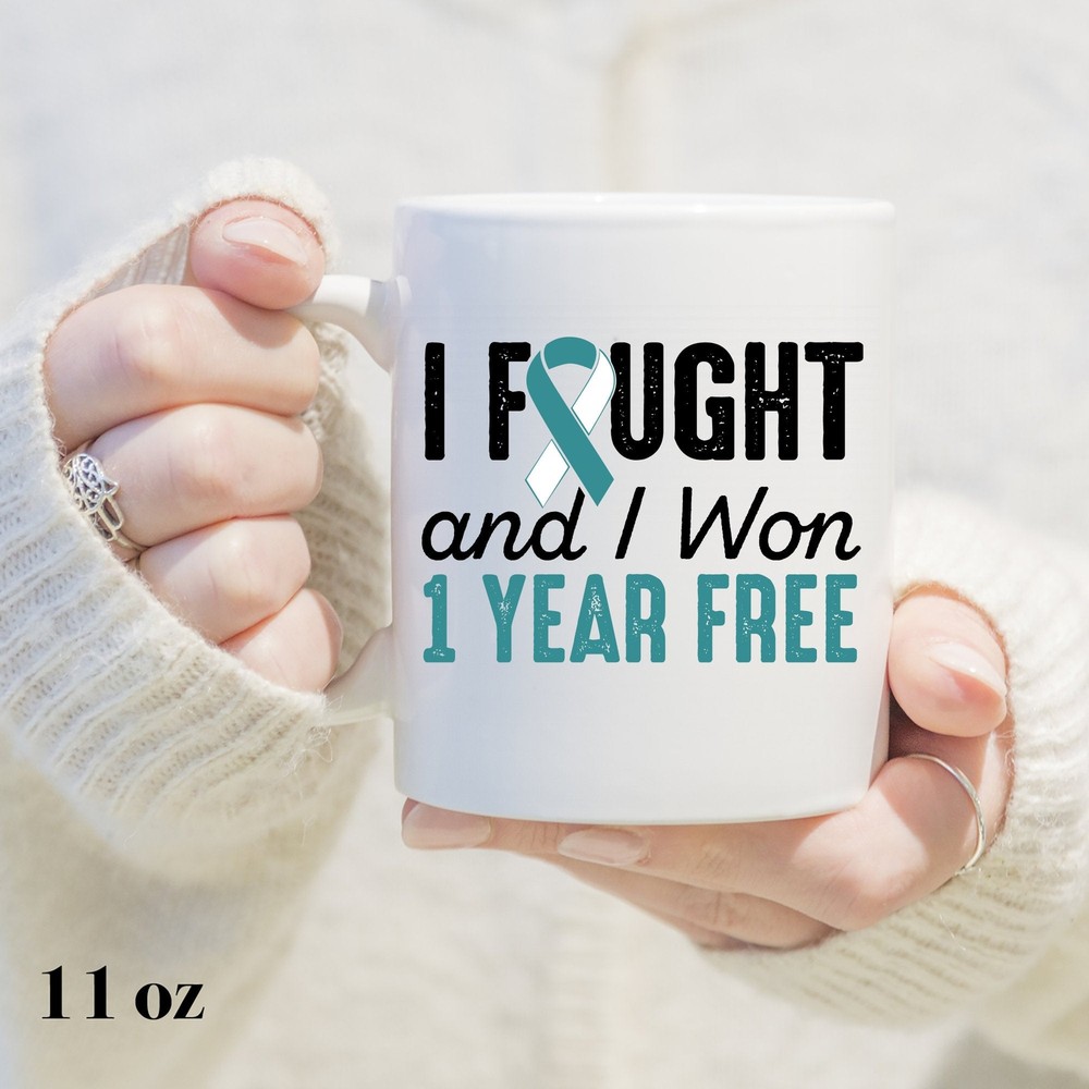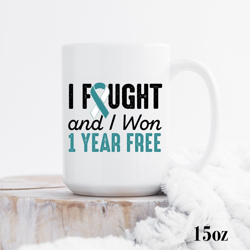 Cervical Cancerversary 1 Year Free Mug Cervical Cancer Survivor Cervical Fighter Product Details.. This high quality 11oz. ceramic white mug has a premium hard coat that provides crisp and vibrant color reproduction sure to last for years. Perfect for all hot & cold beverages. The highest quality printing possible is used. It will never fade no matter how many times you wash it. Material: 100% Ceramic. Print both sides. Dishwasher and Microwave Safe. High Gloss + Premium White Finish. Printed in the U.S.A. Personalized & Custom. We support personalized and custom mug to add custom, when placing an order, you can add notes to the "order note" in shipping address section. Also you can contact us directly via message. Shipping Info. Ready to ship in 1 to 2 business days, All products are made-to-order and proudly printed in the United States. Shipped by USPS and DHL, You will receive your order in 5-7 days. Replace & Refund. All products are defective during shipping broken, chipped will be replaced free of charge. You are not satisfied with the product, we will refund 100% money to you. If any other issues arise, please do not hesitate to message, we would be more than happy to assist you.