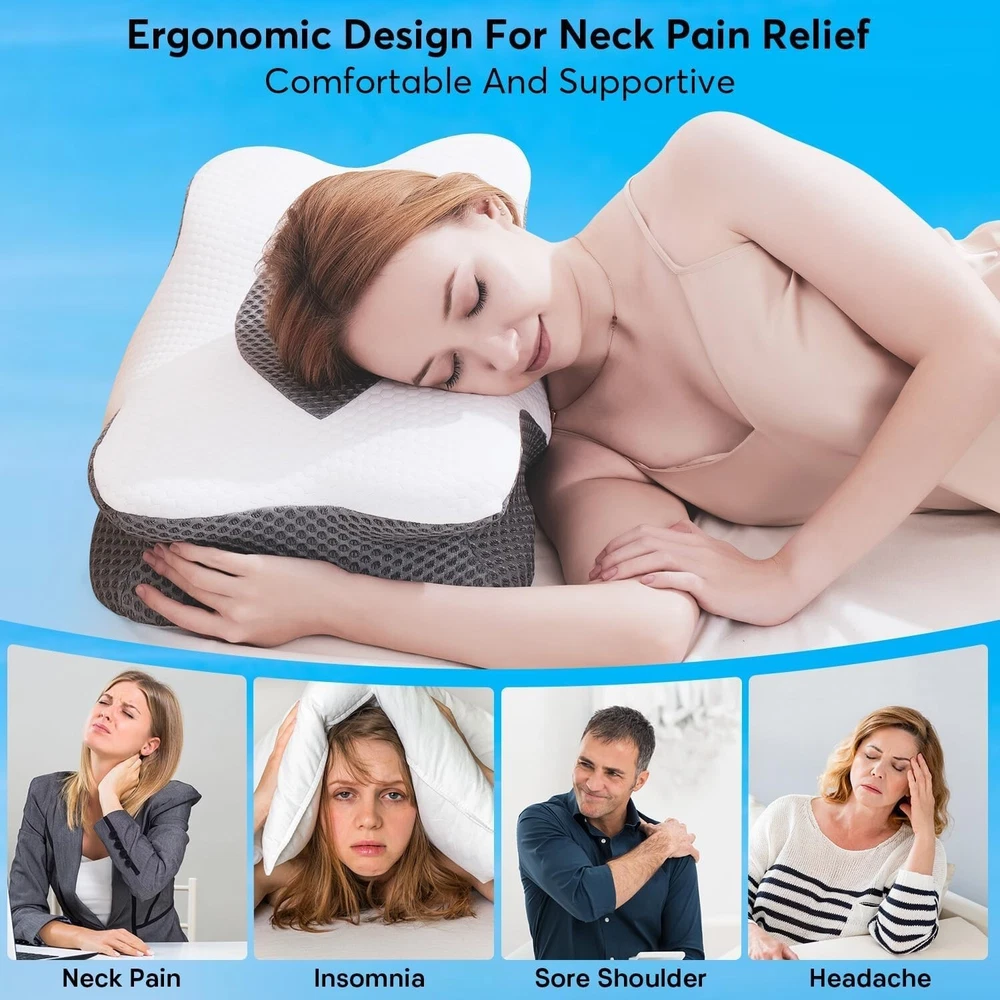 Cervical Memory Foam Pillow for Neck Pain Relief Ergonomic Neck Support Pillows