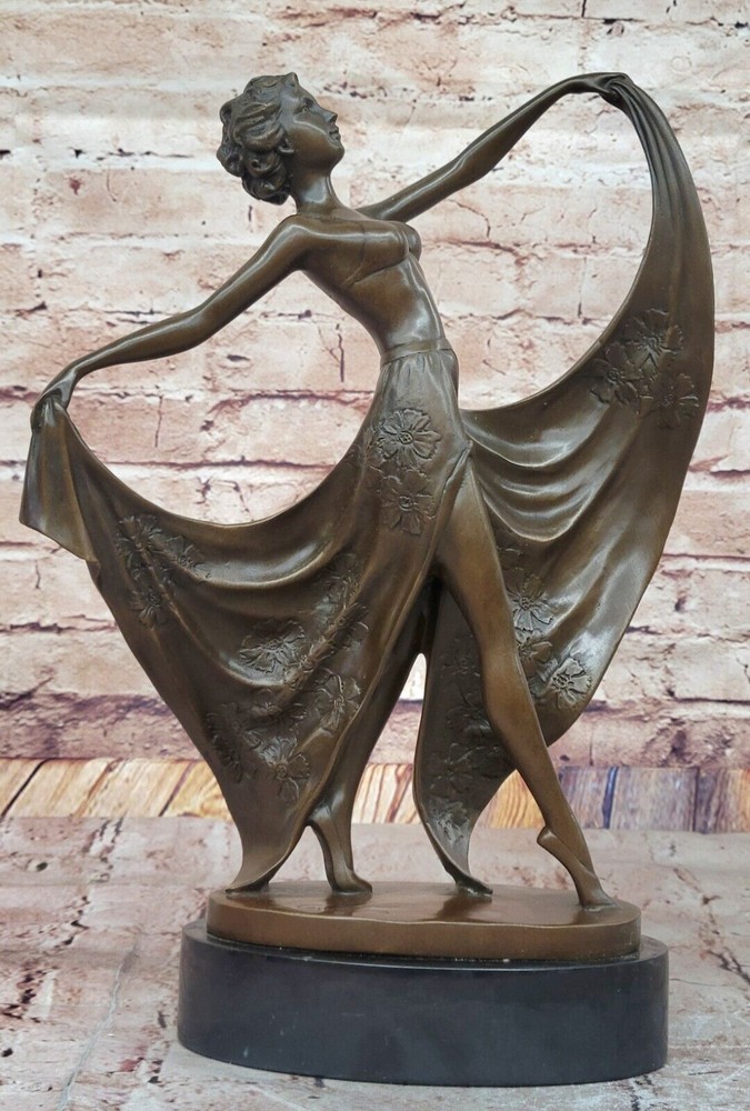 Condition : This sculpture is in perfect condition. Bronze Dimensions with Marble Base: Height 14" X Width 11" Marble Dimensions: Diameter 7" Height without base:13" Weight:10 LBS Inventory:47EPA66512174 This exquisite French Art Deco bronze sculpture by Cesaro captures the elegance and grace of a dancing girl in motion. The fluidity of her pose, combined with the intricate detailing of her form, embodies the spirit of the Art Deco era, where movement and sophistication merge seamlessly. Her expressive stance and delicate features reflect the artist’s mastery in sculpting beauty and rhythm into bronze. Handcrafted using the traditional Lost Wax Method, this artwork ensures exceptional detail and durability. The rich brown patina enhances the depth and texture of the piece, highlighting the fine contours of the dancer’s figure. Every curve and gesture is meticulously crafted, bringing an air of vitality and refinement to this timeless creation. Resting atop a polished black oval marble base, this sculpture exudes stability and elegance, making it a stunning addition to any Art Deco collection or interior space. Whether as a statement piece for collectors or a sophisticated gift for art lovers, this Cesaro bronze dancing girl is a true testament to the enduring charm of the Art Deco movement. French Art Deco Original Cesaro Bronze Dancing Girl Figurine Statue Artwork Video will open in a new window Using the eBay App? Paste link into a browser window: [isdntekvideo]