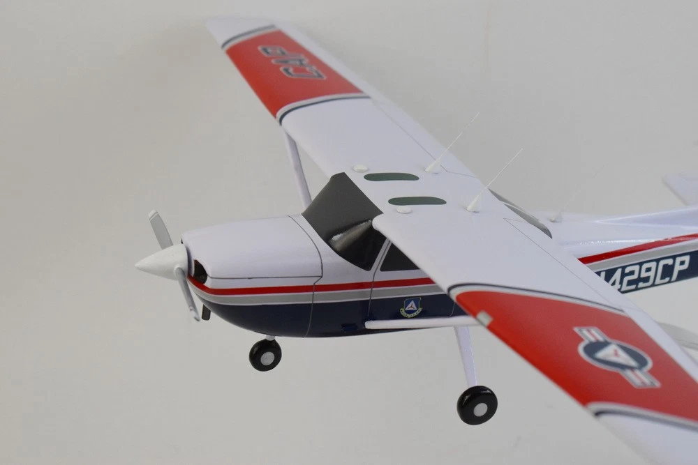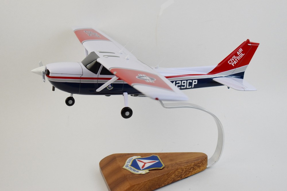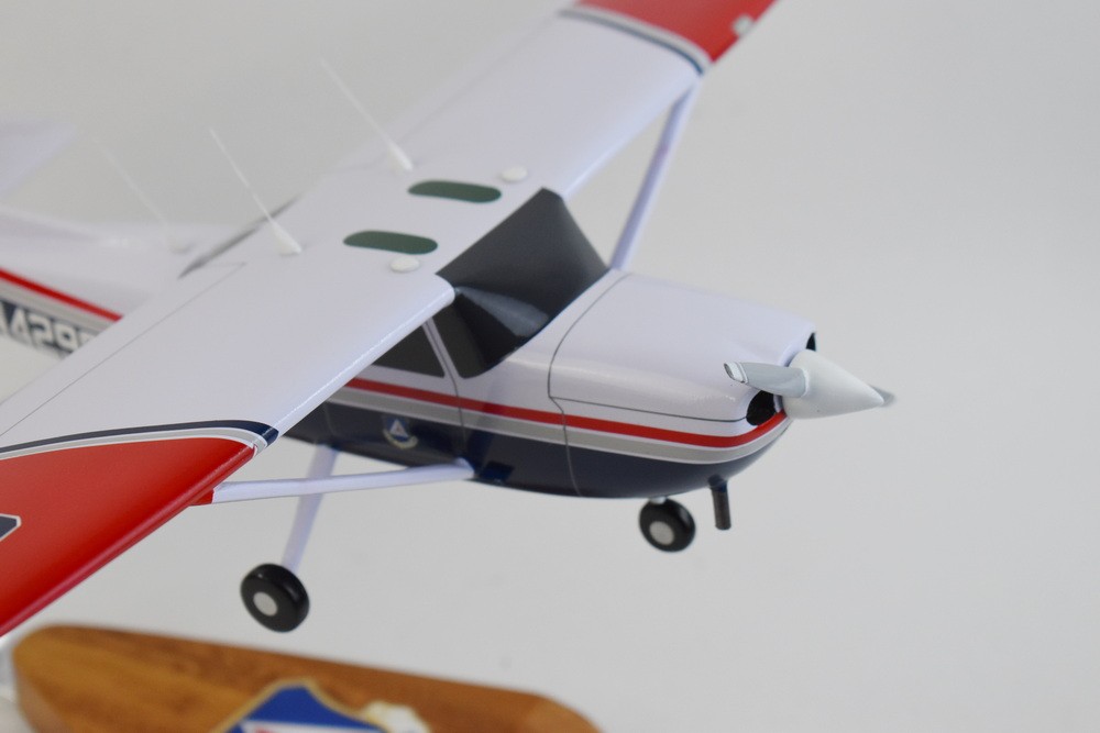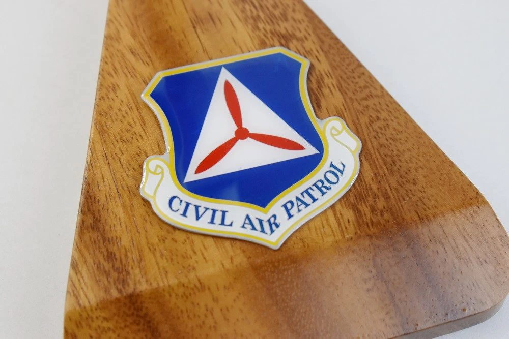 Cessna® 172 Skyhawk, Civil Air Patrol, 18in Mahogany Model Pilots! Enjoy a beautifully crafted Cessna® 172 Skyhawk, Civil Air Patrol Model. You'll treasure the craftsmanship and authenticity of this model. 18 inches Made from Mahogany US Veteran-Owned Business Officially licensed by Cessna/Textron Cessna® is a trademark of Textron Innovations Inc. and is used under license to Squadron Nostalgia LLC. Civil Air Patrol (CAP) is a congressionally chartered, federally supported non-profit corporation that serves as the official civilian auxiliary of the United States Air Force (USAF).[4] CAP is a volunteer organization with an aviation-minded membership that includes members from all backgrounds. The program is established as an organization by Title 10 of the United States Code[5] and its purposes defined by Title 36.[6] Membership in the organization consists of cadets ranging from 12 to just under 21 years of age, and senior members 18 years of age and up. These two groups each have the opportunity to participate in a wide variety of pursuits; the cadet program contributes to the development of the former group with a structured syllabus and an organization based upon United States Air Force ranks, while the older members serve as instructors, supervisors, and operators. Most members wear uniforms while performing their duties. However, there is a category of Aerospace Education Member available to educators. These AEMs do not wear uniforms or attend meetings but do take advantage of professionally generated textbooks, lesson plans and other CAP-provided resources, in their capacity as educators.