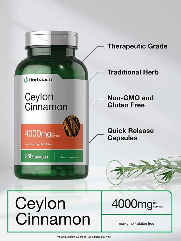 What is Ceylon Cinnamon? Highly touted as “True Cinnamon,” Ceylon is a pure form of cinnamon derived from the inner bark of the Evergreen cinnamon tree. This bark extract is often used as a culinary spice and is a powerful source of naturally occurring antioxidants. Supplementing with Ceylon Cinnamon: There are many ways to reap the nutritional benefits of Ceylon Cinnamon with an herbal supplement. Powder, capsules, gummies, tablets, and liquid extracts are just a few of the many ways to receive this wonderful spice. At Horbaach, we focus on bringing you the highest quality Ceylon Cinnamon pills to support your healthy lifestyle. Horbaach Ceylon Cinnamon: Spice up your daily routine with the best, Horbaach Ceylon Cinnamon! This expert supplement provides the equivalent of 4,000 mg per serving of Ceylon Cinnamon in convenient quick-release capsules. Our formula is naturally gluten-free and non-GMO with no preservatives, making it an excellent choice for any wellness tradition.
