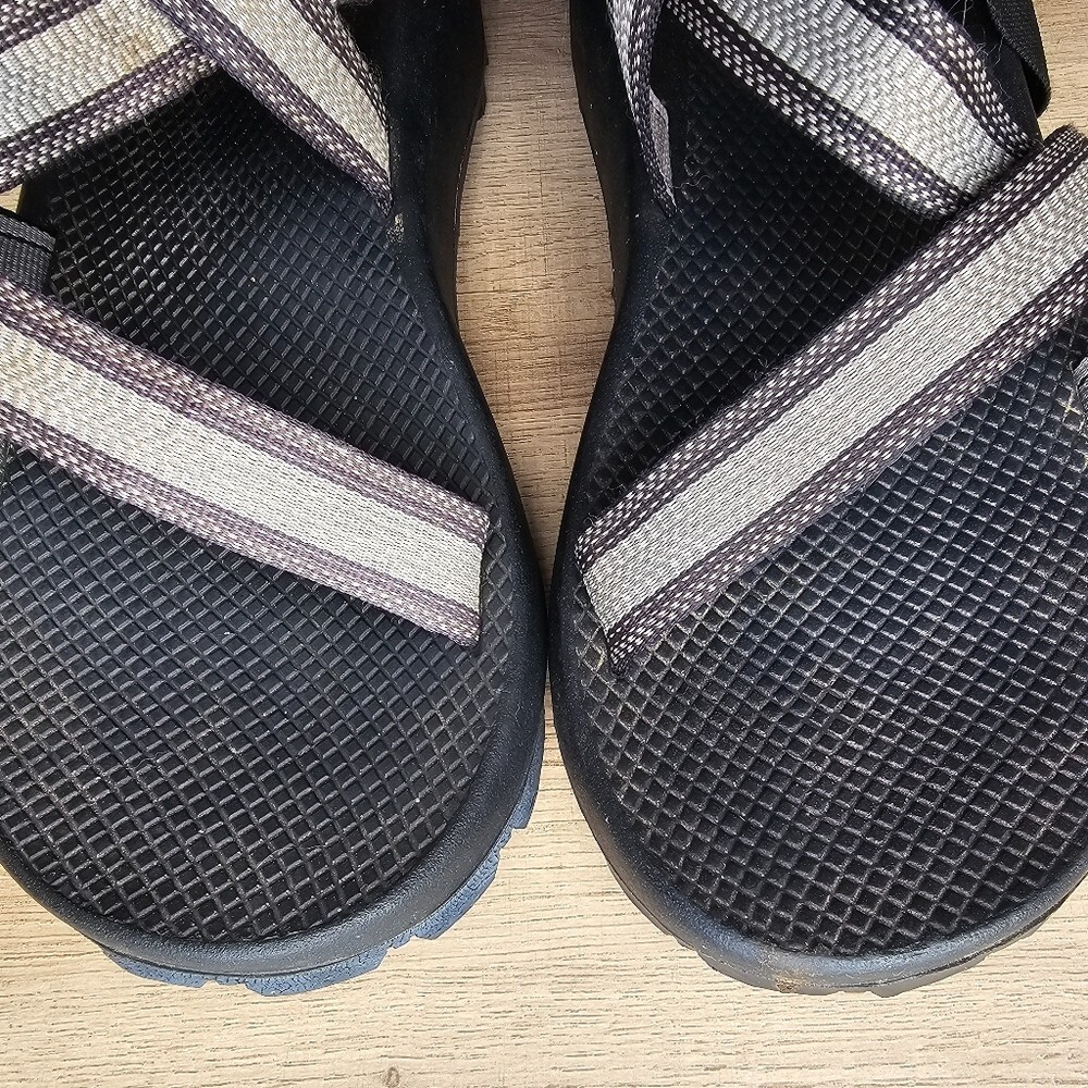 Polyester jacquard webbing upper wraps around the foot and through the midsole for a customized fit Adjustable and durable high-tensile webbing heel risers Injection-molded ladder lock buckle MIDSOLE: LUVSEAT™ PU midsole Vegan-friendly construction OUTSOLE: Non-marking ChacoGrip™ rubber compound 3.5mm lug depth In excellent pre owned condition, no obvious signs of wear. Just needs a rinse. See photos.