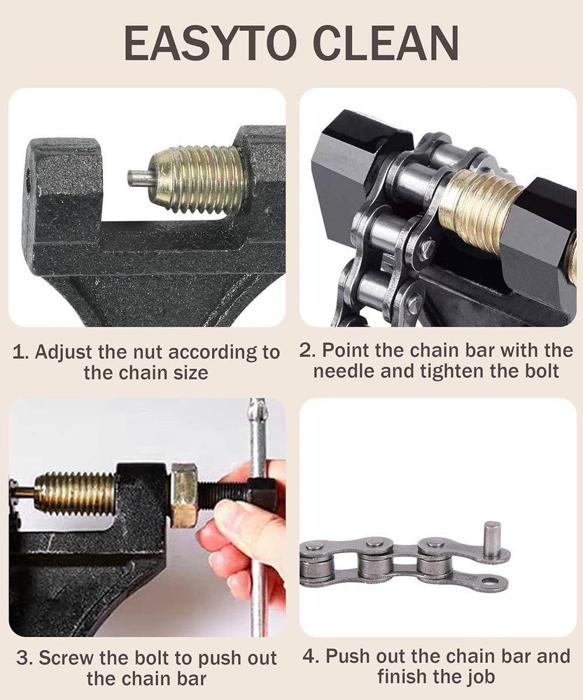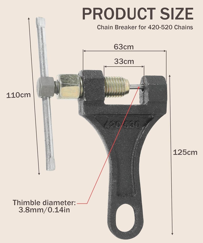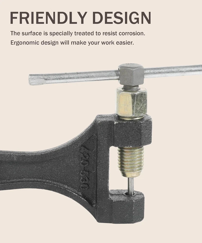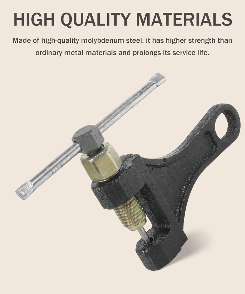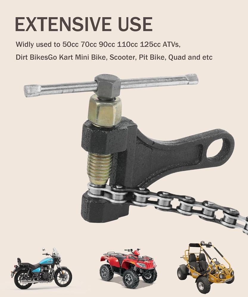Free eBay listing template designed by dewiso.com Chain Breaker,Chain Breaker Riveting Tool,Motorcycle Chain Breaker,Car Accessories Chain Tool for Dirt Pit Bike ATV Motorcycle Bicycle Chain Break #420 428 520 525 528 530, 1360CLQ001 FREE AND FAST SHIPPING! About this item [High Quality Materials]The bicycle chain tool is made of high-quality steel, with a rust resistant surface and strong corrosion resistance. High hardness, less prone to deformation and fracture. The durable structure ensures long-lasting use and reliable performance. [Comfortable Handle] The chain tool adopts a smooth handle design, with an arc-shaped handle for comfortable grip and beautiful appearance. There is a hanging hole at the tail for easy placement. [Save Labor]The chain circuit breaker adopts a labor-saving design, which can easily cut the chain to the required length, making your work easier. Allow you to easily remove chains from various applications. [Suggestion] It is strongly recommended to grind off the chain pin head before using this tool. This will significantly reduce the load on the tool and help prevent premature wear or damage to the fracture tip. [Applicable] This chain breaker is suitable for 420 428 520 525 528 530 roller chains. It is widely used to adjust the roller chain length of 50cc, 70cc, 90cc, 110cc, 125cc ATVs, as well as off-road bicycles, go karts, mini bicycles, scooters, Pit bikes, Quads, etc. › Product We offer a 30-Day Return Policy on items which you are not completely satisfied with. You have the option for a full-refund or an exchange of the item. No returns are available on items shipped outside of the US . Shipping We offer Free Shipping to the US and ship within 2 business days of payment, usually sooner. We use UPS express shipping. That's why your products are usually delivered within 3 days . Contact We try our very best to make sure every customer is completely satisfied. If there's a problem , message us! We're happy to help. 24/7 live chat available.