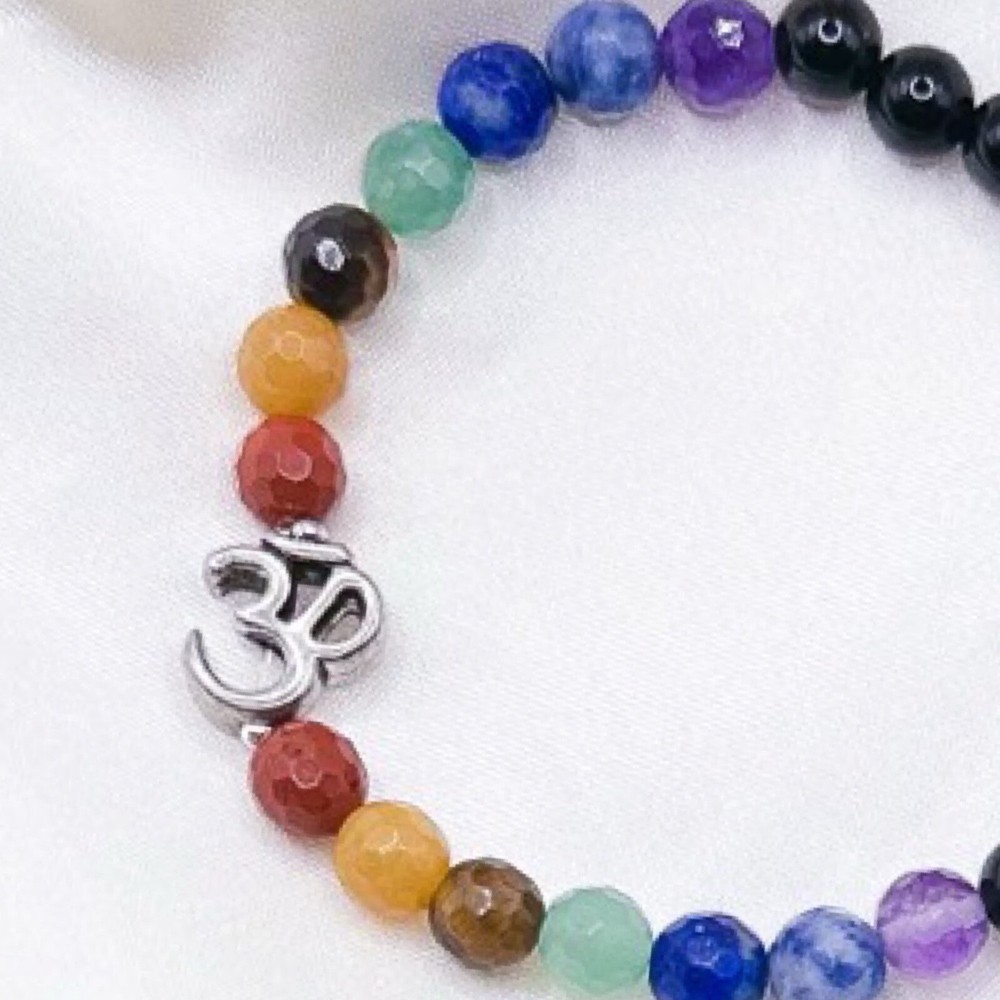Enhance your spiritual journey with this beautiful Chakra Bracelet featuring a natural round-shaped Black Onyx stone. The bracelet is handcrafted with care and attention to detail, making it a perfect gift for any occasion. The charm and beaded style of the bracelet is perfect for those who love yoga and spiritual healing. The bracelet features a stunning silver plated "Om" charm, making it a unique and special piece. The bracelet is perfect for those who want to add a touch of spirituality to their daily life. With its natural and handmade nature, this Chakra Bracelet is a must-have for anyone who wants to explore the world of yoga and spiritual healing.