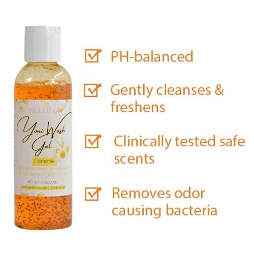 ❀ The perfect Yoni Gel Wash is here! This 100% organic vaginal wash gel gently cleanses and freshens while removing odor-causing bacteria, thanks to its herbal gel base and other natural ingredients. It is pH-balanced so it won't disrupt the delicate ecosystem of your vagina—and we use plantain seeds in our formula to exfoliate dead skin cells, helping you feel smooth and clean down there all day long. This Yoni Wash Gel is also free of synthetic fragrances and colors, so you can rest easy knowing that what you're putting on your body won't cause irritation! ❀ Benefits: PH-Balanced Formula 100% Organic Ingredients Detoxifies, Smoothes, Cleanses And Exfoliates Gently Fights Bacteria And Neutralizes Odors Free of Synthetic Fragrances And Colors Ingredients: Safflower, Motherwort, Angelica, Rose, Saponins, Plaintain Seed, Vegetable Glycerin, Coconut Oils, Purified Water Size: 150ml