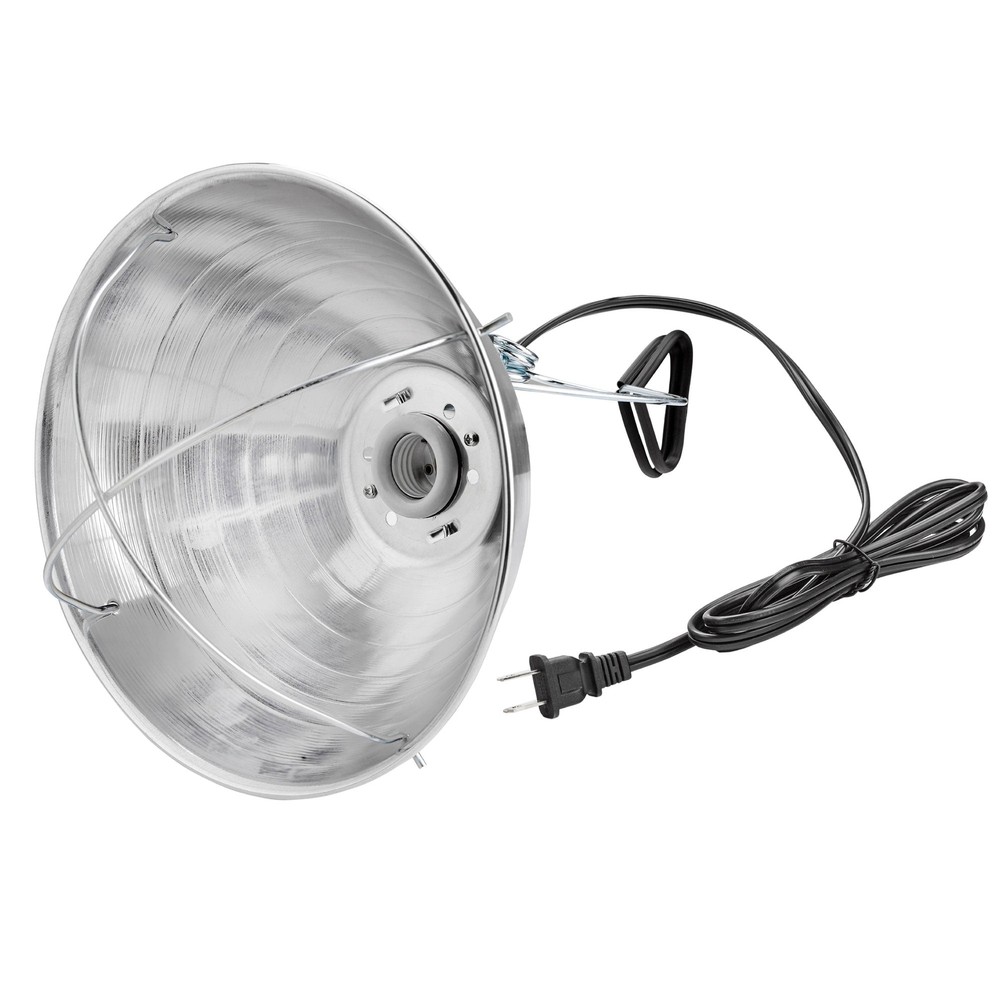 The Champion Electronics Aluminum Clamp Light is designed for halogen, incandescent, and LED bulbs up to 300 watts maximum and includes a protective front guard, making it perfect for use as a heat lamp, brooding fixture, or anywhere higher wattage bulbs are needed. No bulb is included, allowing you to choose the best light for your application. The clamp light has a 10" silver aluminum reflector and is a perfect tool for your garage, barn, workshop, attic, or anywhere portable light is needed. The adjustable base of the steel spring clamp allows the light to rotate 360 degrees making it easy to put the light where you need it most. In addition, the porcelain socket accepts standard medium base bulbs(e12) and includes a 6 foot power cord. A vinyl sleeve covers the clamp surface to secure the light and provide scratch resistance to most surfaces. Do not use in the presence of flammable or combustible material or Hazardous Locations. For Dry Indoor Use Only. 10” Champion Electronics Aluminum Reflector for Use with LED, Halogen, or Incandescent bulbs Porcelain Medium Base Socket for High Wattage and Heat Applications Spring Steel Adjustable Clamp Allows 360 Rotation Vinyl Coated Clamp Surface Designed for Scratch Resistance Base Type: Standard - Medium (E26) 300-Watt Maximum Bulb Rating (not included) Material: Aluminum shield, Steel Clamp Dimensions:10"" x 10" x 12" Cord Length: 6FT Color: Silver Quantity: 1