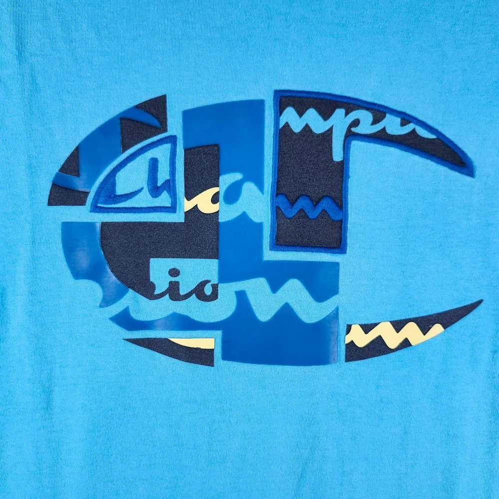 Make a bold statement with this eye-catching Champion t-shirt featuring a unique geometric abstract logo design. Perfect for casual streetwear, sports activities, or adding a pop of vibrant color to your everyday wardrobe. The modern artistic pattern combines style and comfort for an effortlessly cool look. Color: Blue Department: Men Type: T-Shirt Fit: Regular Sleeve Length: Short Sleeve Pattern: Geometric Country/Region of Manufacture: Indonesia Neckline: Crew Neck Features: Lightweight, Breathable Material: Cotton Keywords: champion, logo tee, graphic tshirt, turquoise, athletic wear, streetwear, abstract design, geometric pattern, mens fashion, casual wear, sports apparel, summer clothing