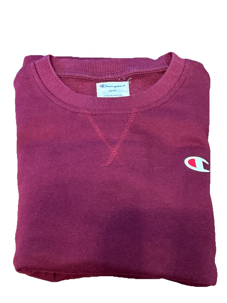 Pit to pit 22”. Champion sweatshirt, featuring a solid pattern and long sleeves with a pullover closure. The crewneck design and regular fit make it suitable for any occasion, from gym and training sessions to cross-training and walking. The Mulled Berry color adds a touch of style, while the logo accents provide a subtle branding experience. Crafted from a blend of polyester and cotton, this sweatshirt is machine washable for easy care. It's available in size M and is perfect for men who enjoy sports-themed clothing. Get your hands on this high-quality sweatshirt from Pakistan, designed to provide comfort and style all year round.