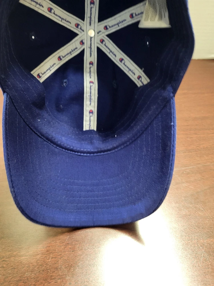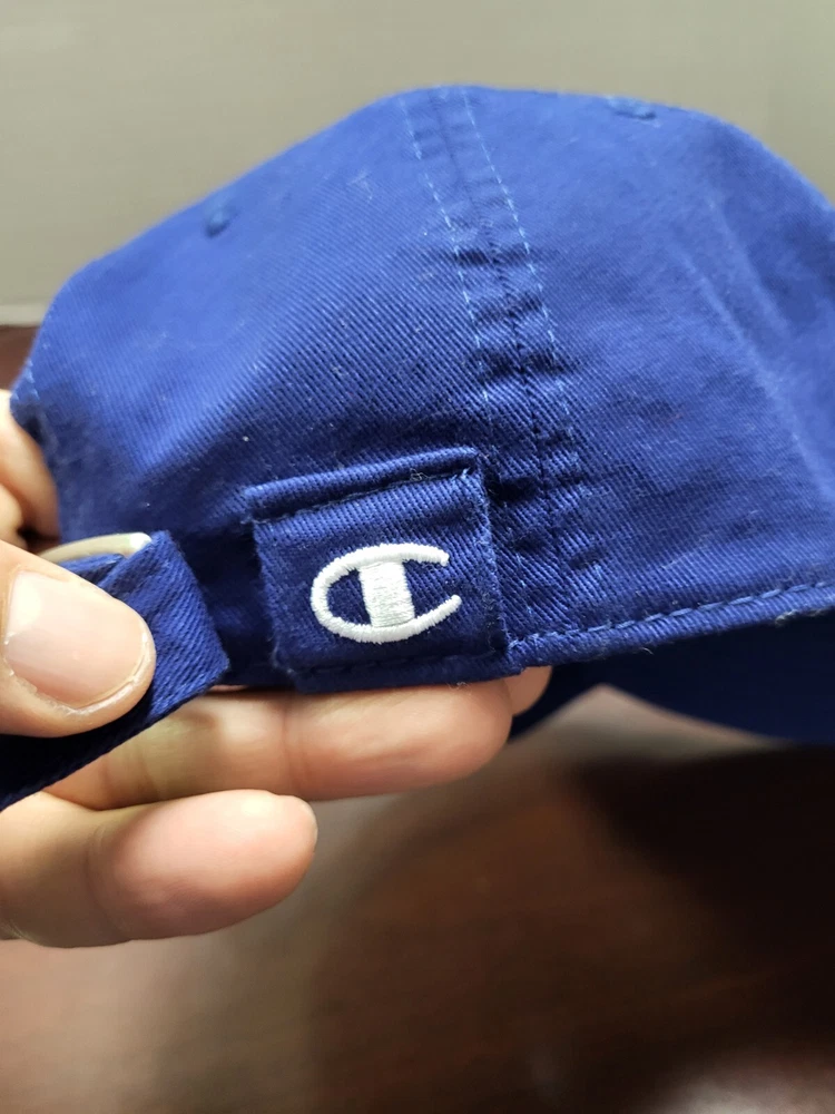 Up for sale is a - Champion blue hat cap dad cap buckle back Hat is in good used condition Nice logo I will ship this item out via USPS Ground Advantage Mail with a tracking number for confirmation I ship items out within 3 DAYS so EXPECT a QUICK delivery! Please feel free to ask any questions you may have