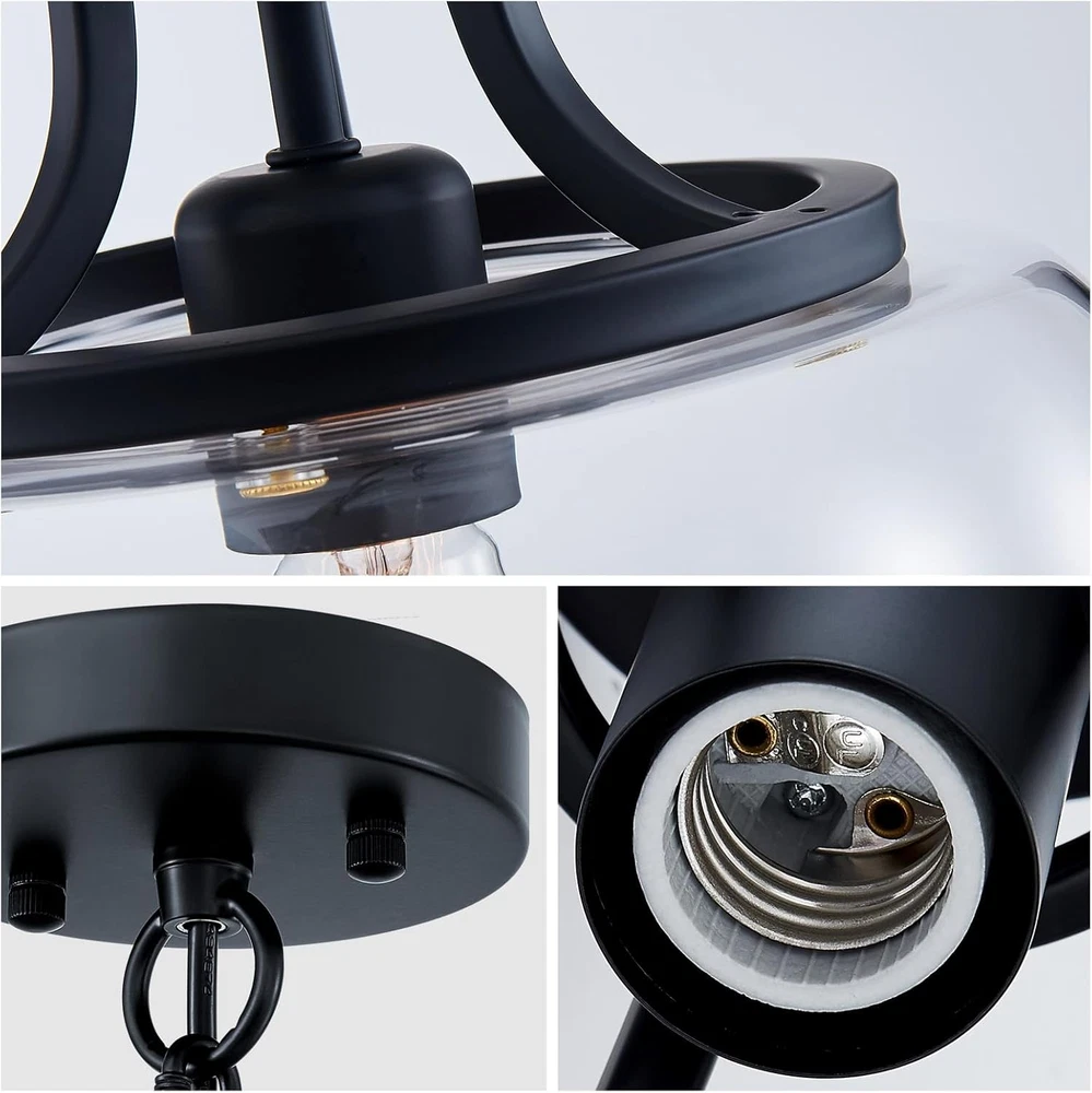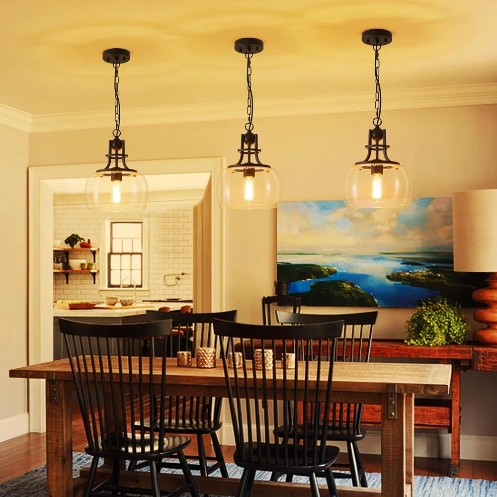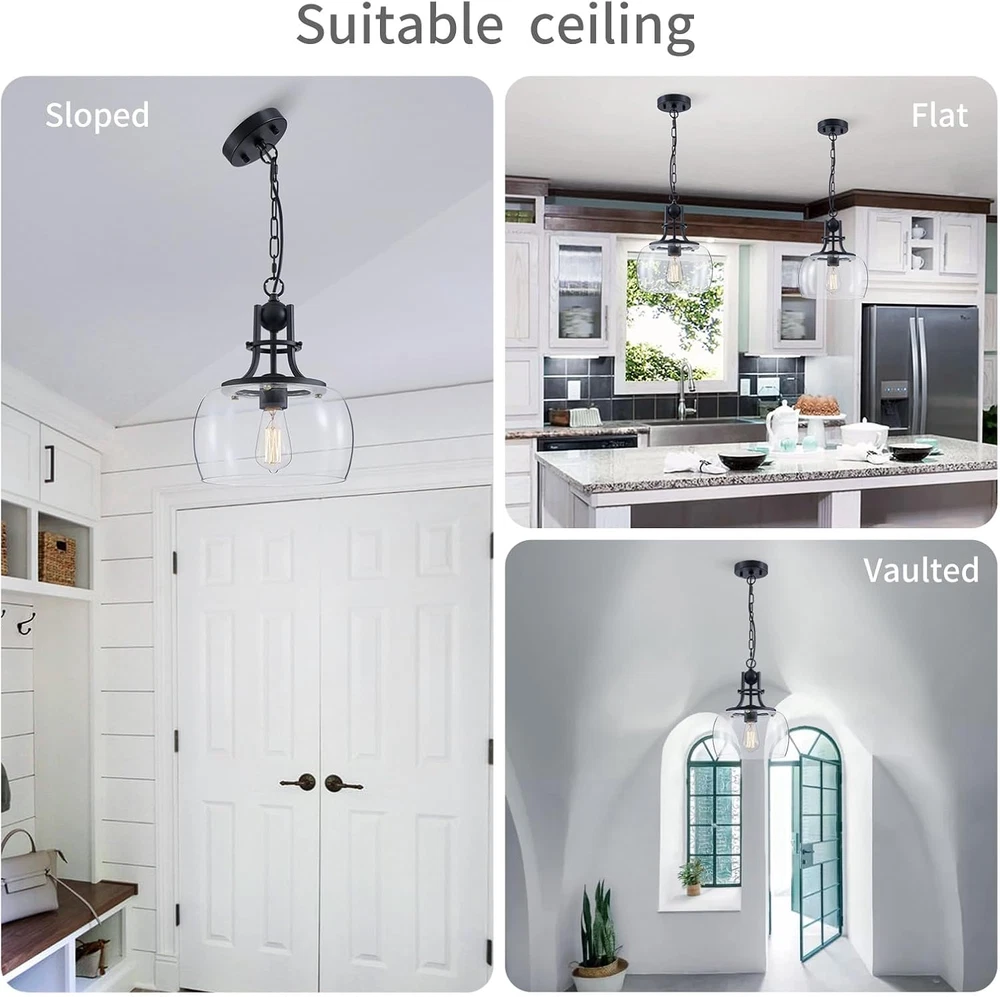 Store New Arrivals Add to Favorite View Feedback Contact Chandelier Rustic Farmhouse Industrial round Ceiling Pendant LED Light Fixture with Clear Glass Shades for Dining Room Kitchen Island Foyer Entryway, H 13" X W 10", E26 Base, Black Description Item model number USHD30304 Light Source Type all light souces with E26 socket is compatible Style Industrial Number of Items 1 Power Source AC Number of Light Sources 1 Control Method Remote Embellishment Crystal Batteries Included? No Lighting Method LED Controller Type Push Button Unit Count 1.0 Count Room Type Dinning Room, Kitchen Island, Hallway, Foyer, Enterway, Living Room, Bedroom, Office Assembly Required Yes Product Dimensions 10"L x 10"W x 13"H Material Glass, Metal Model Name USHD30304 Specific Uses For Product Indoor use only Included Components Mounting Hardware Indoor/Outdoor Usage Indoor Bulb Base E26 Light Color warm white Batteries Required? No Item Weight 5.26 pounds Light fixture form Chandelier Special Features Dimmable Special Feature Dimmable Part Number USHD30304 Shade Color Clear Mounting Type Ceiling Mount Color Ceiling Light, Black, 10" Wide Wattage 60 watts Shape Round Voltage 2.4E+2 Volts Shade Material Glass Fixture Type Non Removable Chandelier Size: 13" High and 10" wide, shade 5.7" high. Canopy 4.7 inches wide. Chain: 39.4 inches high(max). Bulb Socket Base: E26, 120V 60watts(Max). Package includes one non-dimmable Edison filament LED bulb. The light fixture is fully dimmable if you use a dimmable bulb instead with compatible dimmer switches. Design: This rustic farmhouse Wuzups pendant chandelier light with design offers a modern interpretation of a classic urban-industrial style, which adds a vintage flair to your space. It comes in a matte black finish and features a prominent round clear glass shade. The mouth-blown glass has a few pinprick bubbles that add to the vintage look and feel. Easy Installation: Assembly required and easy to install, hang and change bulb, with all mounting hardware and a detailed mounting instruction included. Widely Use: Dining Room, Kitchen Island, Hallway, Foyer, Enterway, Living Room, Porch, Hotel, Staircase, Bedroom, Office and etc. Product Description 1 Entry & Corridor 2 Kitchen Island 3 Dining Room 4 Kitchen Island ABOUT US We offer the best prices around on high quality products. Our E-store includes media such as books, movies, music and games while offering electronics, toys, sporting apparel, clothing, tools, general home, garden items and more. SHIPPING We are always working hard to ensure your package arrives as soon as possible. Please understand that some factors like weather, high postal traffic, and the performance of shipping companies are outside of our control. We offer free shipping to the lower 48 states and ship within 2 business days of payment, usually sooner. We do not accept P.O. Boxes. Please provide a physical address. For shipping outside of the continental USA, we only use eBay's Global Shipping Program.The item is shipped to KY and then sent to the rest of the world. International customers are responsible for all duties and taxes. Continue to check out in order to calculate costs for shipping the item to your country. Messages regarding eBay's Global Shipping Program MUST be directed at eBay EXCLUSIVELY. RETURNS We offer a 30-Day Return Policy on items which you are not completely satisfied with. You have the option for a full-refund or an exchange of the item. No returns are available on items shipped outside of the USA. PAYMENT We accept PayPal. CONTACT US This page content is yet to come Please ad us to your favorite seller and visit again later Thank You CUSTOMER SATISFACTION We try our very best to make sure every customer is completely satisfied. If there's a problem, message us! We're happy to help. WE ACCEPT Copyright © 2021 AutoDS. | All Rights Reserved