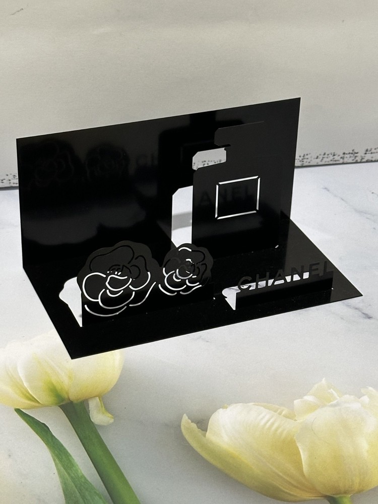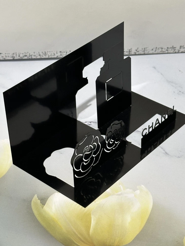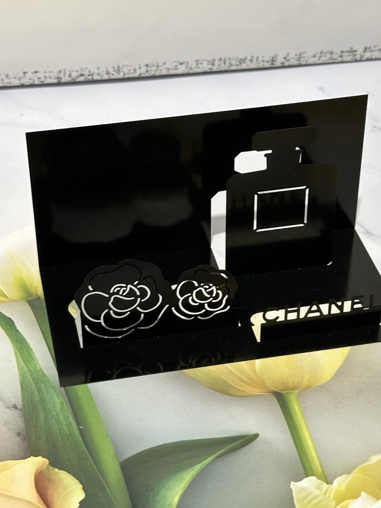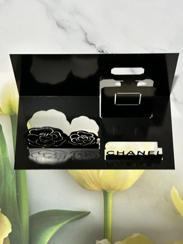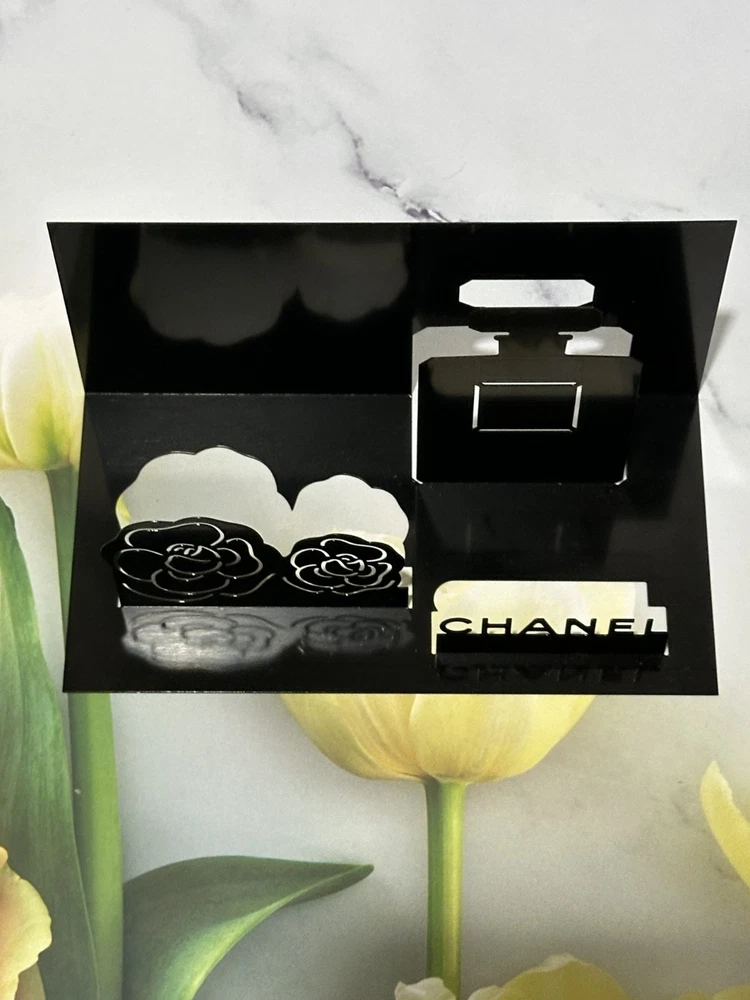 ✨ Rare CHANEL Camélia Store Display – Limited Edition Collectible ✨ Authentic • Made in France • Metallic Black • Extremely Rare Bring true Parisian luxury into your space with this stunning CHANEL Camélia Limited Edition Store Display , featuring the iconic CHANEL N°5 design. Originally created as an exclusive in-boutique display piece, this item was never sold to the public , making it a highly desirable collector’s treasure. Crafted from premium metallic material with a deep black finish, the display showcases exceptional detail and timeless Chanel elegance. Perfect as a luxury interior décor accent , photo display stand , or centerpiece for any modern boutique, beauty space, or collector’s shelf. Why You’ll Love It ✨ Authentic CHANEL display piece ✨ Limited edition – very rare and hard to find ✨ Elegant metallic black finish with iconic branding ✨ Can be used to display photos or small items , or simply as interior décor ✨ Ideal for collectors, Chanel enthusiasts, photographers, boutique owners, and luxury interior styling Condition Pre-owned, excellent condition. Minimal cosmetic signs of use consistent with display purpose. Details Material: Metallic / metal Color: Black Origin: Made in France Type: Interior store display / collectible sign Design: Features CHANEL Camélia & N°5 perfume theme