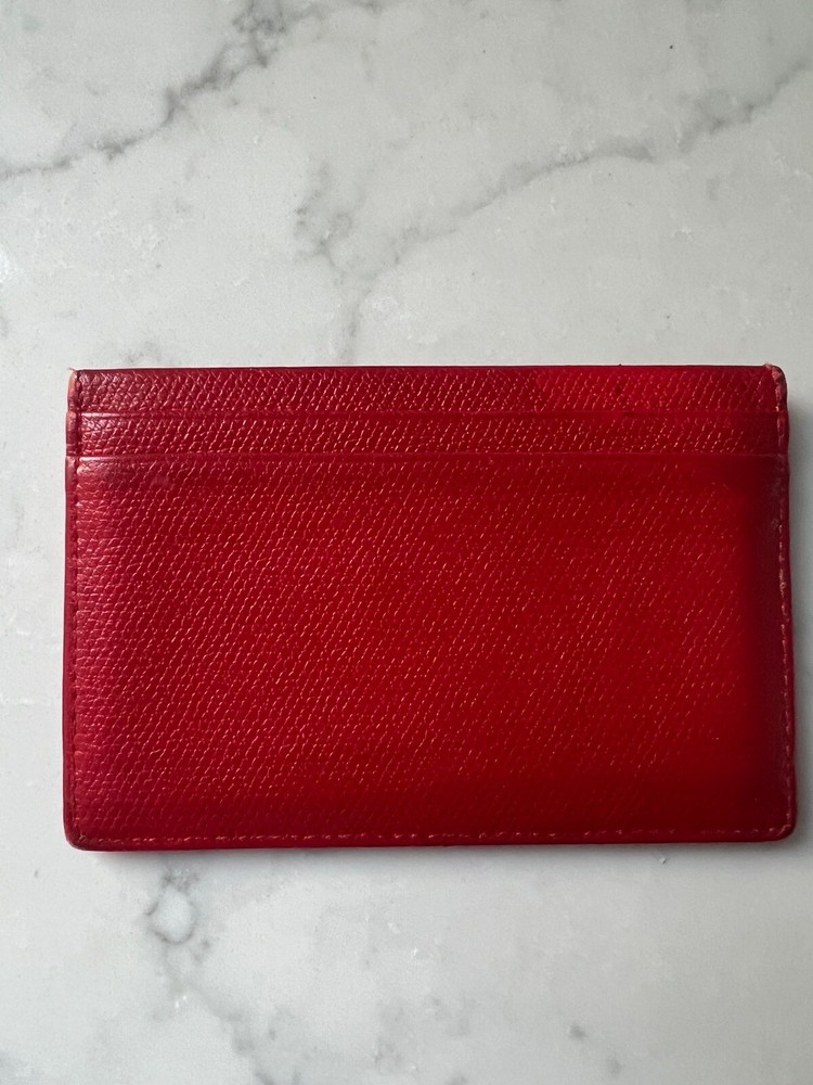 Excellent pre owned condition Caviar leather Red & Gold 1 card slot in front. 3 in back Comes with certificate of authenticity via entrupy Hologram in tact Great piece. I sell lots of authentic designer items on here so please check reviews and buy with peace of mind MSRP $1150