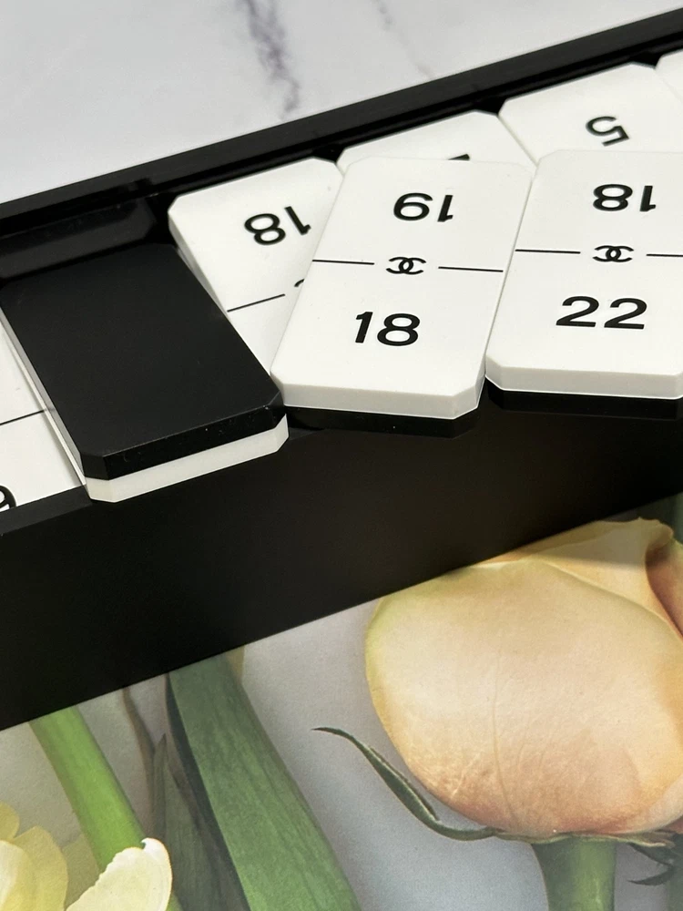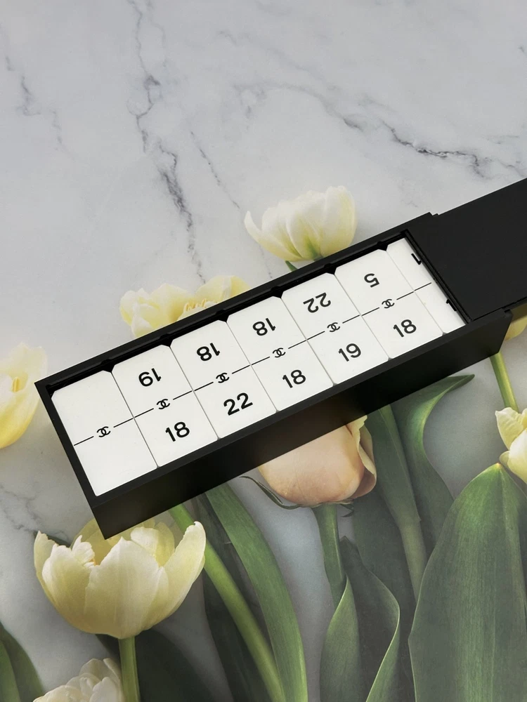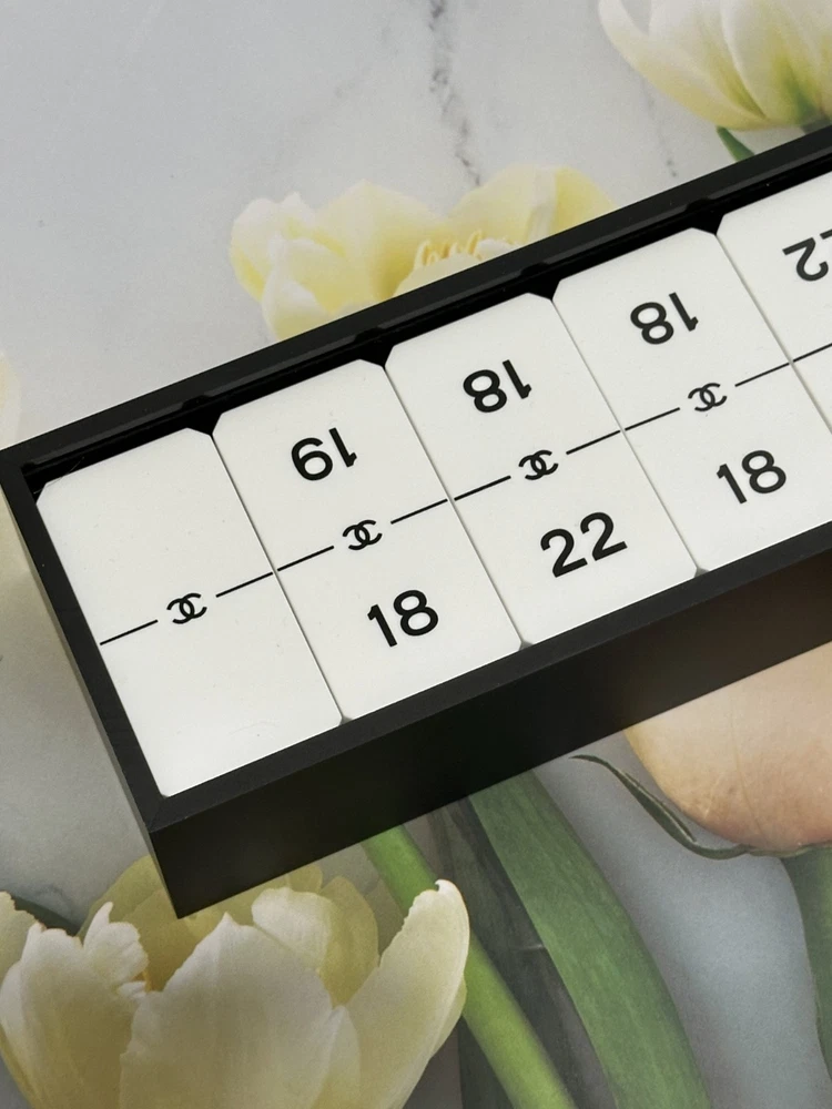 🖤 Rare Chanel Domino Set – Exclusive Boutique Display Collectible (Not for Sale to the Public) 🤍 Elevate your interior décor with this ultra-rare Chanel Domino Set , an exclusive item originally created for boutique use and never sold in stores . Made in France, this sophisticated game set captures the timeless elegance of the Chanel brand in a classic black and white design. Featuring one full set of domino stones, each piece showcases Chanel’s signature minimalist style, making it both a stylish décor accent and a playful, luxurious conversation piece. Perfect for: • Chanel collectors • High-end interior design • Coffee table or vanity décor • Fashion-themed photo shoots • Unique gifting • Luxury display setups This Chanel Domino Set is more than just a game — it’s a statement piece that reflects the brand’s iconic aesthetic and refined Parisian charm. Rarely available on the resale market, it’s a coveted treasure for anyone who appreciates the intersection of luxury and design. Add a touch of Chanel sophistication to your home with this exclusive collectible. ✨ Material: Plastic Color: Black and White Size: (Box: 22 cm x 7 cm x 4.5 cm; domino piece: 6 cm x 3 cm x 0.5 cm)