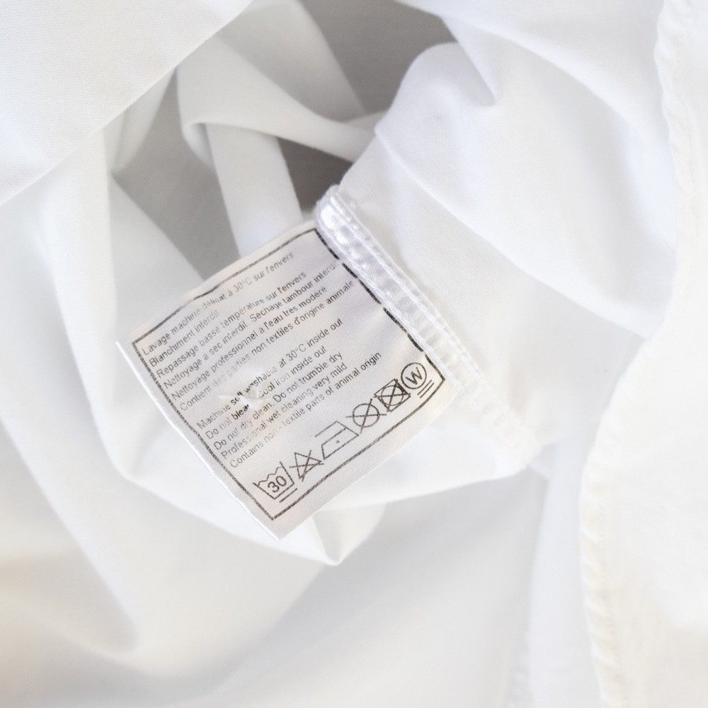 Chanel Men’s Uniform White Dress Shirt - Size 43 - Made in France - Rare Chanel Uniform dress shirt in classic white. Originally designed for internal or limited-use purposes, this shirt features the rare “Not for Resale” tag, making it a collectible and stylish piece for fashion connoisseurs. Product Details: • Brand: Chanel Uniform • Size: 43 (approx. Large / UK 17) • Color: White • Material: 95% Cotton, 5% Elastomultiester • Made in France • Classic button-up design with spread collar and button cuffs • Clean, professional tailoring with a timeless silhouette Measurements (Flat): • Shoulders: 47 cm • Chest: 56 cm • Sleeves: 54 cm • Length: 77 cm • Hem: 58 cm Condition: Pre-owned in good condition. No major flaws, some light signs of wear from general use. Please refer to the photos for exact condition. Shipping & Handling: • Ships within 1 business day • Professionally packed • Tracked & insured delivery worldwide