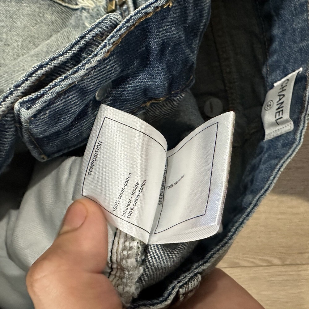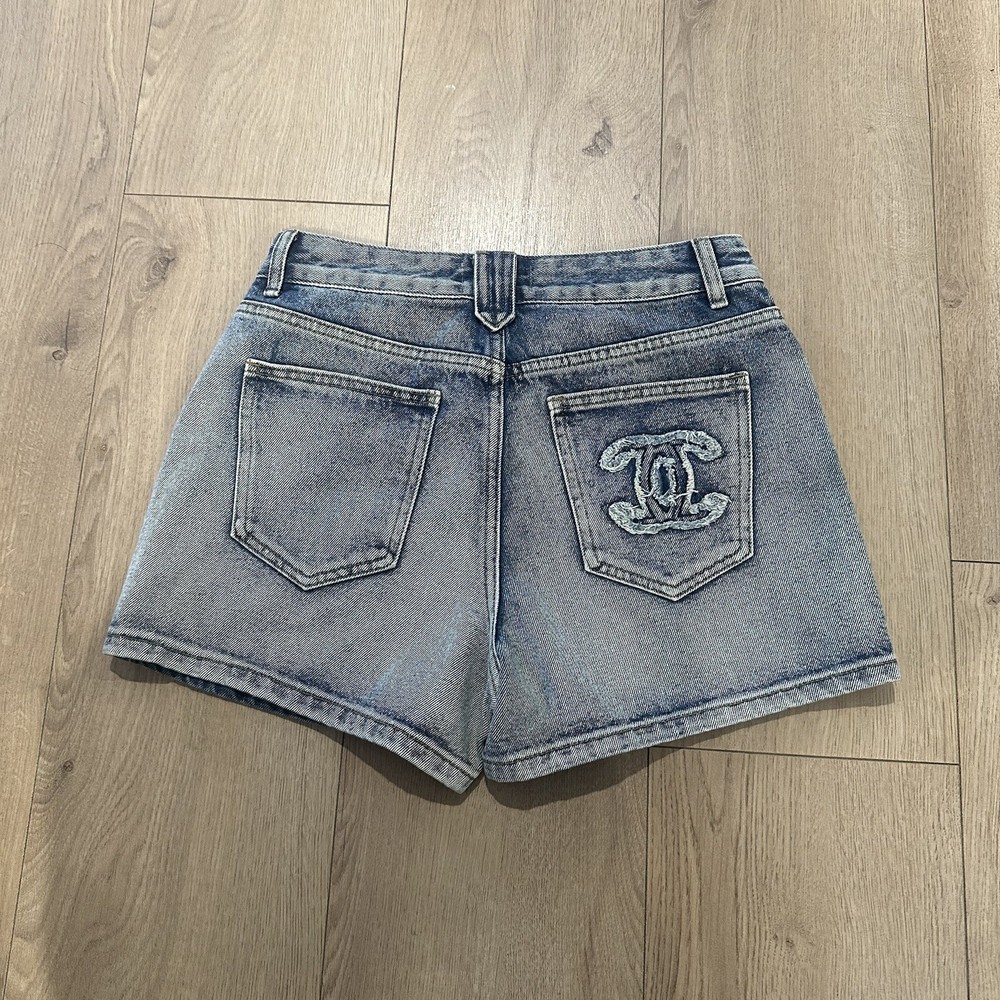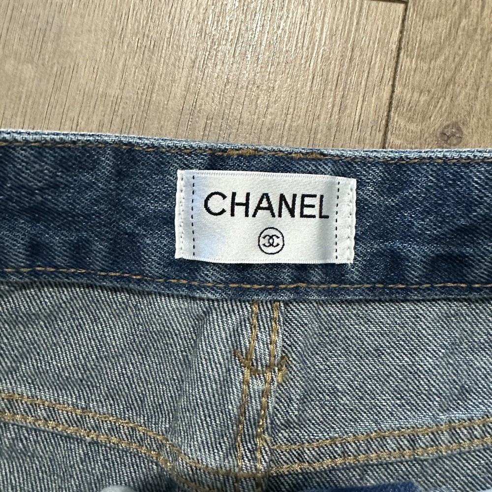 These Chanel Studded Denim Shorts in Size EU36 are a stylish and edgy addition to any woman's wardrobe. Made from cotton denim with a studded logo detail, they feature a flat front and a button closure. Perfect for casual occasions and featuring a Barbie character, these shorts are both fashionable and comfortable, with a regular fit and a waist size of 36 inches. Handmade in France, they are ideal for walking and beach activities. The iconic Chanel brand adds a touch of luxury to these trendy shorts, making them a versatile and chic choice for any fashion-forward woman.