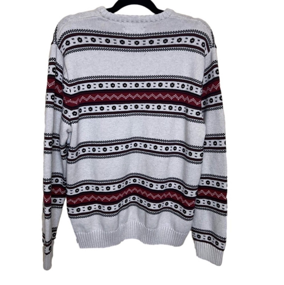 Chaps Logan Christmas Sweater Men’s L Heavy Red Cream Pattern Pullover Crew Neck Sweater is in good pre-owned condition. No defects or stains. Smoke free and pet free home. 100% cotton material. Pit-20.5”, length-26”, and sleeve-25”. We list new stuff everyday! Feel free to send offers anytime! Please review all pictures and ask any questions you’d like before purchasing! Shipping next business day! Get ready for the holidays with this Chaps Logan sweater. This multicolor, geometric-patterned sweater features a crew neckline, long sleeves, and a tight-knit style. 103-5