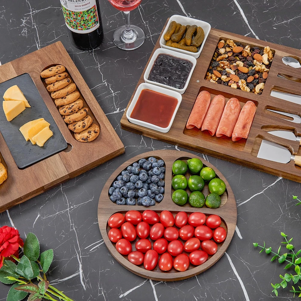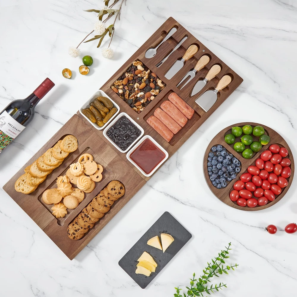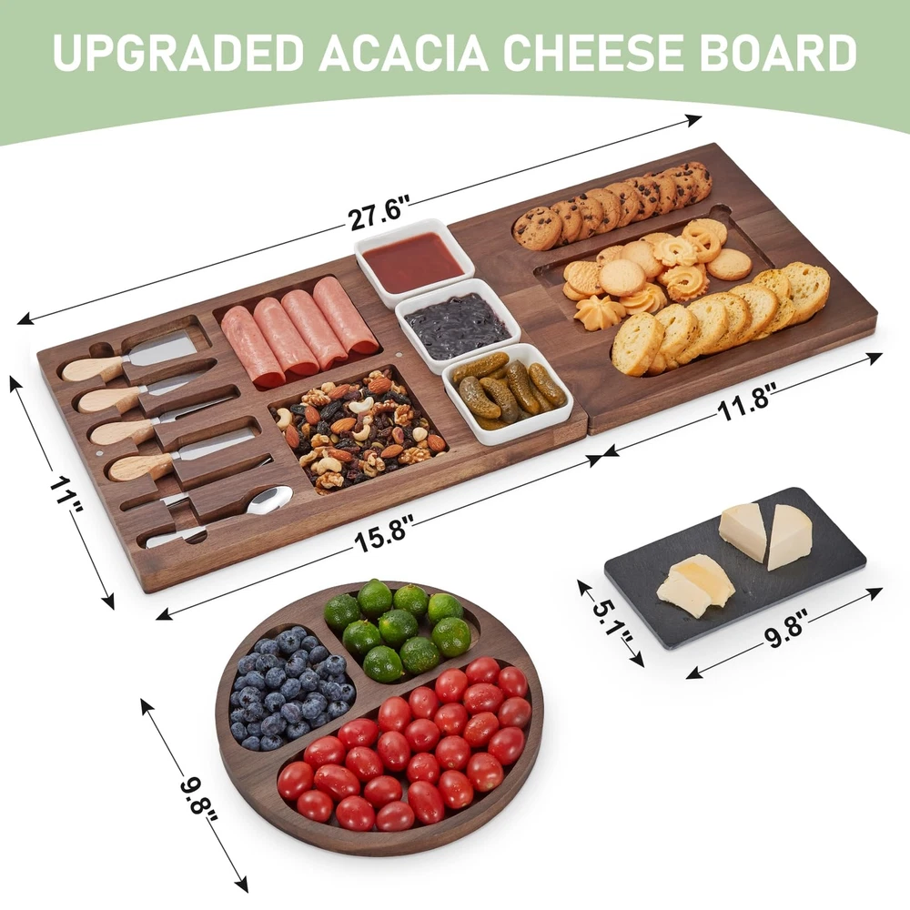 Fast and Free Shipping on All Orders! Come to our stores, where your satisfaction is guaranteed. Charcuterie Board Set & Cutting Board, Acacia Wood Cheese Board with Knife Set, Extra Large Cheese Platter with Bowl, Fork, Spoon, Serving Platters and Trays for Xmas Gifts, House Warming Gifts Product Images Item Description Charcuterie Board Set & Cutting Board, Acacia Wood Cheese Board with Knife Set, Extra Large Cheese Platter with Bowl, Fork, Spoon, Serving Platters and Trays for Xmas Gifts, House Warming Gifts Key Features [Superior Acacia Wood Craftsmanship]: This charcuterie board and knife set is meticulously crafted from high-quality acacia wood, renowned for its durability and exquisite grain patterns, ensuring each board is uniquely elegant. [Generous Size for Entertaining]: The extra-large 27.6 x 11 inches serving board, comprised of two magnetic plates, offers ample space for artfully arranging an array of cheeses, meats, fruits, and more, creating an impressive spread for entertaining. [Comprehensive 19-Piece Set]: The set 4 cheese knives, 4 dessert forks, 4 spoons, 3 ceramic bowls, 1 marble cutting slate, and 1 individual fruit plate, providing everything needed for serving and presenting charcuterie items and accompaniments in . [Magnetic Combination Design]: With its seamlessly harmonized magnetic pairing, the 3 in 1 charcuterie board set is versatile and easily stackable for convenient storage, making it suitable for intimate gatherings or large parties. [Housewarming Gift]: With its opulent design, premium materials, and complete array of accessories, this charcuterie board and knife set makes for a thoughtful and memorable housewarming gift, ideal for friends, family, or newlyweds. Thank you for shopping with us! Contact Us 📧 If you have any questions, feel free to reach out via the eBay messaging system. We respond to all inquiries within 24 hours. Payment Methods 💳 We accept PayPal, credit cards, and other payment methods supported by eBay. Please ensure your payment information is current to avoid delays. Shipping Information We ship to the address on your eBay account. Please confirm your address before completing the purchase. Delivery times are typically 3-5 business days. If there are delays, please allow an extra 1-2 business days due to postal service issues or technical problems. We use trusted shipping services like UPS, FedEx, and USPS. Shipping is available to the contiguous 48 states only. We do not ship to Alaska, Hawaii, US territories, APO/FPO addresses, or PO Boxes. Local pickups are not available. For any issues with delivery, please contact us promptly. Customer Feedback 🌟 We value your feedback and strive to earn your trust. If you're not satisfied with your purchase, please contact us and we'll work to resolve the issue. Return Policy - We offer a 30-day money-back guarantee. - If the item is defective or you are not satisfied, contact us for a replacement or refund. - For all returned products, buyers MUST contact us for the returning address.