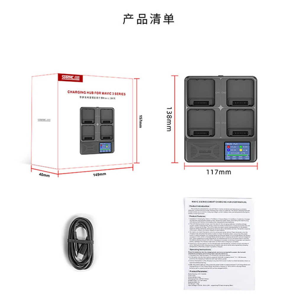 You may also like For DJI Air 3 Front and Rear Arm Assembly Replacement Parts Drone Arm Motor 75.33 USD 88.62 USD 11.98 USD 15% off For DJI Mini 3 Pro ND Lens Filters UV/CPL/ND8/16/35/64-PL Set Filter Kit Drones 8.73 USD 10.27 USD Free shipping 15% off 1 Set Propeller Guard Drone Accessories for DJI Mini 3/3 Pro Drone 7.37 USD 8.67 USD 0.98 USD 15% off Universal Ultra-bright Flashing Light for Mini Series/Avata/Mavic/Genie3/4 Drone 18.79 USD 22.11 USD Free shipping 15% off Vertical Handle Plate Base for Panasonic S5 Microsingle Camera 24.58 USD 28.92 USD Free shipping 15% off Tempered Glass Film HD Lens Film Camera Accessories for DJI Pocket 3 5.75 USD 6.76 USD Free shipping 15% off Drone Lens Protector Tempered Glass Film 9H Anti-scratch Cover for Mini 4 Pro 7.05 USD 8.3 USD Free shipping 15% off For DJI FPV Drone Aircraft Lens Protective Cover Gimbal Camera Lens Case Shell 15.92 USD 1.98 USD For DJI Air 3 Propeller Guard Protector Lightweight Crash Protection Drone 11.79 USD 13.87 USD 2.98 USD 15% off Cell Phone Gimbal to Sports Camera Adapter OSMO 6/5/4/3 to Action 4 13.57 USD 15.96 USD Free shipping 15% off Cell Phone Gimbal to Sports Camera Adapter For OSMO 6/5/4/3 to Action 4 13.03 USD 15.33 USD 2.5 USD 15% off For DJI Mini 4 Pro Replacement Front and Rear Arm Assembly Drone Arm Motor Drone 67.8 USD 79.76 USD 13.98 USD 15% off Silicone Protective Cover Case for DJI Mini 3 Pro DJI RC Screen Smart Controller 12.48 USD 14.68 USD Free shipping 15% off Dust-proof Foot Pad Booster Stand Anti-Abrasion Non-Slip for DJI AIR 3/3S 7.62 USD 8.97 USD Free shipping 15% off For DJI Mavic 2 Pro Gimbal Axis Motor Shaft Arm with Camera Frame Drone 211.97 USD 249.38 USD Free shipping 15% off For DJI MINI 3 PRO Drone Propeller Blades Stabilizer Fix Holder Accessories 5.08 USD 5.98 USD Free shipping 15% off For MINI 4 PRO Propeller Guard Propeller Protection Ring Drone Accessories 10.31 USD 12.13 USD Free shipping 15% off For DJI Mini 3 Pro Drone Lens Hood Guard Gimbal Sun Shade Cover Protector Parts 7.64 USD 8.99 USD Free shipping 15% off Product Description Charge Manager with Screen Accessories Part for DJI Mavic 3/Mavic 3Pro/Classic Charge Manager with Screen Charger Battery Case Accessories for DJI Mavic 3/Mavic 3Pro/Classic Feature s: l Designed for DJI's Mavic series batteries (5000mAh), it is recommended to use DJI 65W USB-C charger or other chargers that support the USB PD fast charging protocol, and comes with a USB C-C cable l Can charge four Mavic 3 Pro/Mavic 3 Classic/Mavic 3 Cine/Mavic 3 batteries, according to the battery power in ascending order to charge the battery, eliminating the annoyance of plugging and unplugging one by one when charging multiple batteries, it takes about 75 minutes to fully charge one 5000mAh battery l LCD display shows real-time data of rechargeable batteries - voltage, current, power, charging time, battery capacity, battery temperature, charging progress bar and battery percentage; LCD display can visualize the power level of the four batteries, so you don't have to worry about running out of power; Battery capacity can reflect the service life of the battery l No need to insert the batteries back into the drone, put the batteries into the Charge Manager, press the battery button to check the battery level; long press the power button to switch between full charge mode and storage mode, full charge mode can be charged up to 100%, and storage mode will charge the batteries up to 60% when the battery level is lower than 60%. When the battery is ready to be stored for a long period of time, it needs to be kept at about 50%-80%. Full power and low power storage will cause battery damage. Indicator light will not flash at the end of charging l Suitable for all kinds of drone organizers and backpacks, compact and easy to carry. Intelligent trickle current ensures battery saturation while lowering the battery charging temperature to effectively protect battery life. Specification: l Material: ABS+PC l Color: Grey l Size: 117x138x33mm l Quantity: 1 Set l Applicable Models: for DJI Mavic 3/Mavic 3Pro/Classic Package: l 1 x Charge Manager with Screen, 1xData Cable, 1x Manual, 1x Color Box Note: l Newly purchased batteries or batteries that have not been used for a long time will be dormant. Please wake this battery from hibernation mode by charging it on the drone before use. The Charge Manager will not respond if a battery in hibernation mode is placed in the Charge Manager About Us Payment Shipping Returns Feedback Our company is located in China, East Eight Zone, woking time is 9:00 to 18:00, from Monday to Friday. We mainly accept payment through PayPal . Payment should be done within 7 days after the end of the Auction. Otherwise Unpaid Item Dispute will be filed with eBay. International Buyers Please Note: a) Import duties, taxes and charges are not included in the item price or shipping charges. These charges are the buyer's responsibility. b) Please check with your country's customs office to determine what these additional costs will be prior to bidding/buying. We ship items to your PayPal confirmed address only. Please make sure your address in PayPal is matched with your shipping address before you pay. We are unable to take any responsibility for wrong address, any custom delay or tax. Transit time is highly depended and provided by Postal Service. All items will be dispatched within 1 business day after receipt of payment. Please notice that orders placed on weekends and public holidays will be dispatched on the next working day It may take longer to other countries or remote areas. If you have not received your shipment within 30 days from payment, please contact us. We will track the shipment and get back to you as soon as possible with a reply. Our goal is 100% customer satisfaction. We back our products with a 30-DAY SATISFACTION GUARANTEE! Customers should inspect item(s) and notify us within 30 days of any problems. If you have a problem with your it