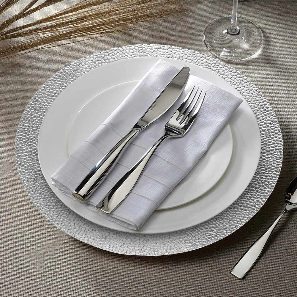 Take your tablescape to new levels of sophistication, Whether you’re hosting an intimate dinner party or glamorous upscale event, these Charger Plates from Charge It by Jay offer amazing convenience. Blending high-end decorative appeal with the practicality of a placemat, each charger catches guests’ minor messes and spills throughout the evening. Use them to display name cards, menus, napkin rings and other elegant accessories before placing courses atop their spacious 13” surface area. Available in a variety of colors, materials and styles, the collection brings beautiful, durable hospitality to every dinner service. Charge It by Jay delivers unique gifts, supplies and collectibles crafted with the time-honored techniques and long-lasting materials of yesteryear. Upgrade your event with our vast lineup of premium serve ware and other artful accessories, and purchase confidently knowing your treasures always arrive in peak condition. Once they do, you’ll be entertaining in style. Add some Charger Plates to your cart today! Specs & Details Quantity: 1 Surface diameter: 13” Material: melamine Use: indoor and outdoor Care: wash and dry by hand Note: for decorative use only How to Enjoy Place a charger at the center of each place setting Decorate the table with complementary flowers and fabrics Set each course on top to keep your tablecloth clean Behold guests’ admiration of your thoughtful tablescape! BRING INSTANT ELEGANCE TO THE TABLE – Decorative Charger Plate Makes a Stunning Focal Point for Any Place Setting; Perfect Choice for Home, Catered Parties, Restaurants & Other Professional Uses SUPER DURABLE MELAMINE MATERIAL – Resilient Piece Resists Chipping, Cracking, Fading & Other Common Damage for Many Years of Dependable Use; Versatile Design is Ideal for Indoor & Outdoor Events AMPLE 13” DIAMETER SURFACE – Large Service Plate Keeps the Table Clean & Accommodates a Variety of Courses Including Soup Bowls, Salad Plates, Dinner Plates, Dessert Plates & Other Unique Dishes EASY, BREEZY MAINTENANCE – No Complicated Care, Cleaning or Upkeep; Just Wipe Service Plates Clean w/ Warm Water & Mild Soap & Let Air Dry; Safely Stack Chargers & Store w/ Your Supplies for Next Time SOPHISTICATION FOR EVERY OCCASION – Collect a Bulk Supply of Charger Plates for Use at Formal Dinner Parties, Holiday Gatherings, Weddings, Bridal & Baby Showers, Upscale Events & Other Celebrations Included components: 4 charger plate