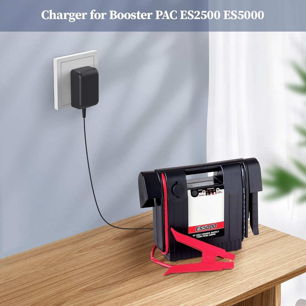 About this item For Booster Adapter Compatible Models: Fit for Booster PAC ES2500KE ES5000C ES2500C ES5000 ES2500 ES6000 J1000 J850 J900 J2000 ESA214 ES1224 ESA218 ESA22 ESA217 DC1500500 141-003-000 GPU481801000WD00 GPU48180500WDOO 141-004-000 141-337-000 Jump Starter. Fit for CarStart CS1000 CS1200.( NOT fit for 6.3x3.0mm adapter.) Please make sure your model number or P.N matches this listing Specifications: input: 100-240V 50/60HZ| Output: 19V| for Booster PAC power cord: 6.0FT/1.8M. The extremely long power cord is sufficient for indoor use. Please confirm your jump starter DC Port is 5.5×2.5mm or 5.5×2.1mm before you purchasing UL Certified: Report Reference ID: E482416. Ensures durability and secure while charging your devices. Replacement AC/DC power adapter has been fully aging tested and validated by DONYOIE to ensure fits for Booster PAC ES5000 Jump Starter Security Provided: This replacement for Booster PAC ES2500 power supply adapter is designed with multi protection including Short circuit protection,Over current protection,Over voltage protection,Over temperature protection to keep secure while charging What You Get: 1 x Replacement for Booster PAC AC Power Adapter. We offer and 24 hours customer service, 30 days refund and 1 year exchange. Please contact us if you have any problem of our products, we will do our best to solve it The product is a charger specifically designed for use with various models of Booster PAC products, including the ES5000, ES5500, ES2500C, ES6000, and ESA217 J9. This AC/DC adapter is made in the United States and serves as a power source for charging batteries in a variety of consumer electronics devices. Its versatile design allows it to work with different models within the Booster PAC product line, providing a convenient and reliable charging solution for users.