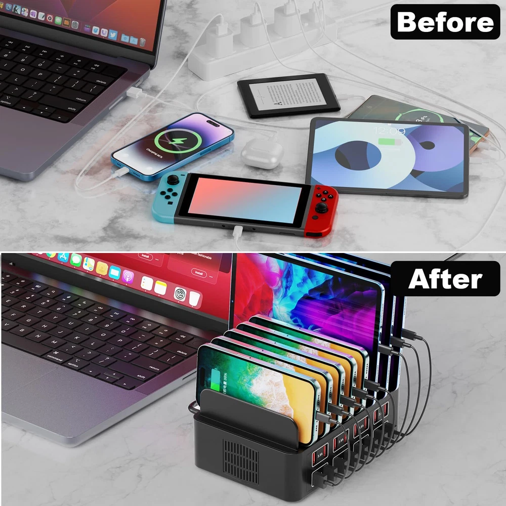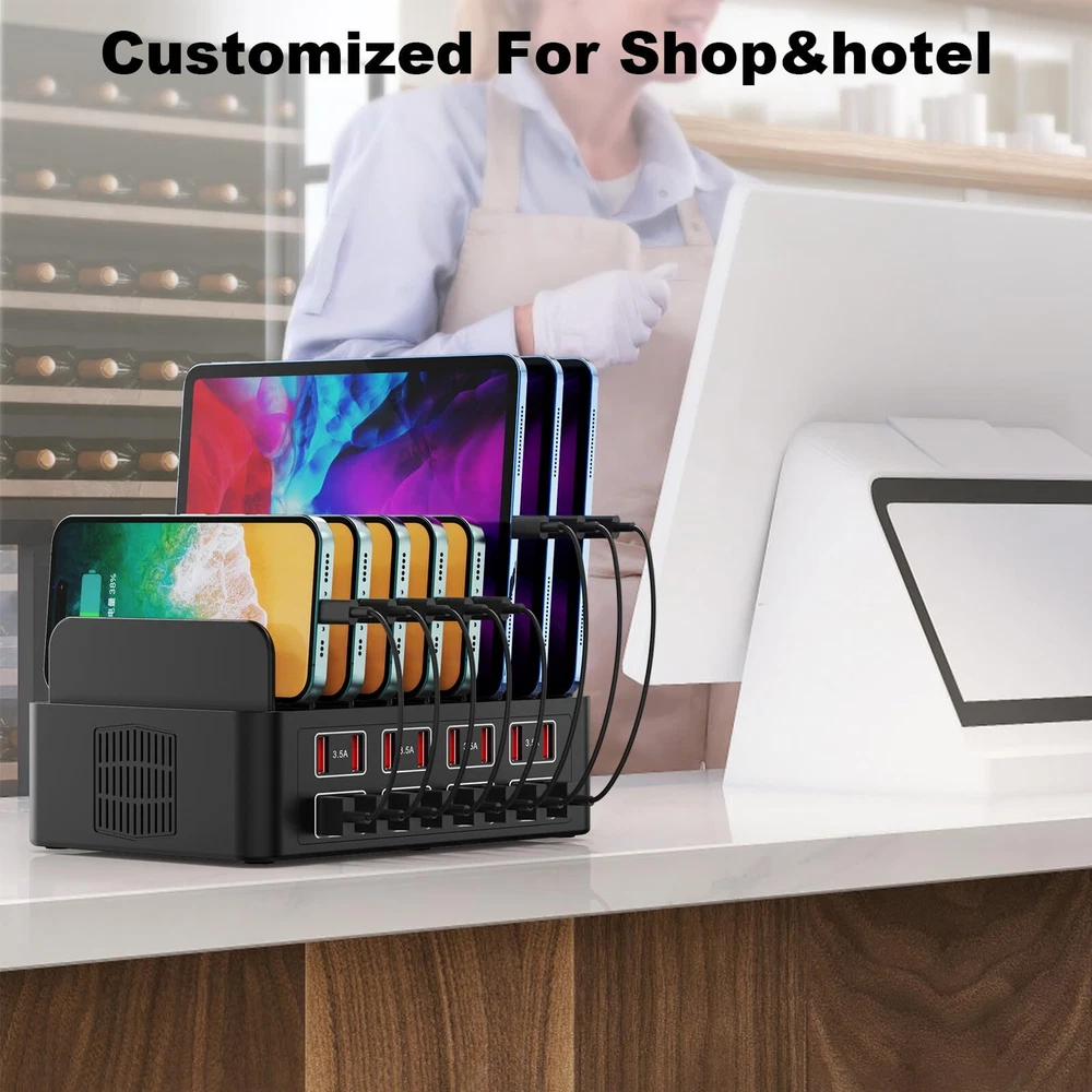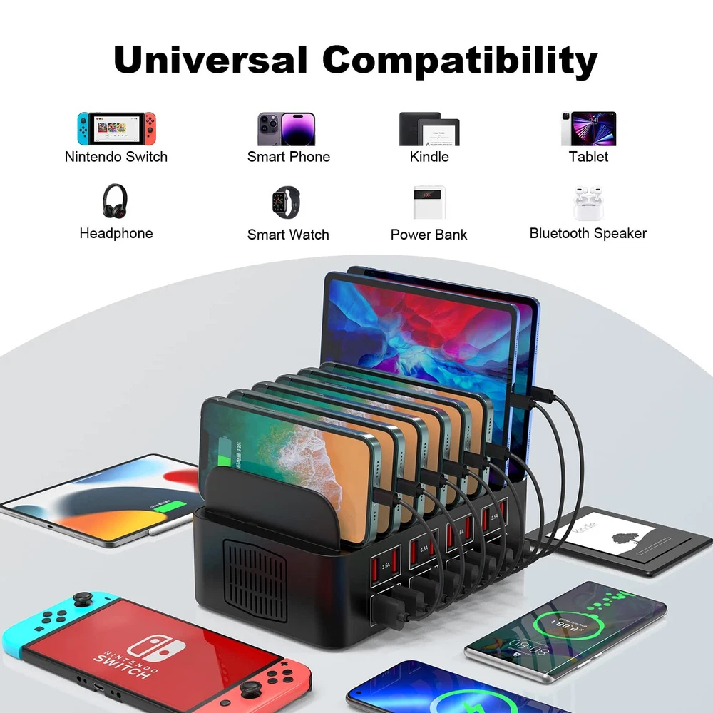 【150W USB Fast Charging】Cinlinso USB Charging Station with 16 Port Fast Charging ports. The total output power is 150W Charge up to 5V/2.4 amps per port or 35 Amps overall.This USB charger multi-station can charge multiple USB devices at the same time, freeing up your power outlet 【Intelligent Charging】The multi usb charging station with Intelligent detection, can automatically identify and distribute the corresponding power to different devices, Charging More efficient,More Safe. Made of fireproof material and come with non-slip pad 【Multi Security Protection】USB Charger Station is equipped with Multi-Protection safety system which ensures complete protection against over-voltage, over-current ,overload and short-circuit protection.built-in fan cooling which can effective heat dissipation .Effectively protect the safety of equipment and battery. 【Universal Compatibility】The multiple USB charging station is compatible with your iPhone and Android phones, tablets, earphone, kindles, and other consumer electronics. Can be used at the home, office, school, restaurant, and hotels. 【Package List and Warranty】 List: 1* 16-Ports USB charging machine (150W 16-Port Charging station),1* Power cable,1*English Manual.Our worry-free 2-YEARS warranty, 18 months quality assurance,24-hour Quick- responding customer service 【Great gift】The charging station organizer is perfect on nightstand, living room, office, kitchen counter, hotel, travling.Good gift idea for your family, friends, colleague on special occasions, like birthday, anniversary, father's day, Mother's Day, Easter and more.