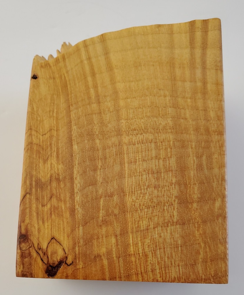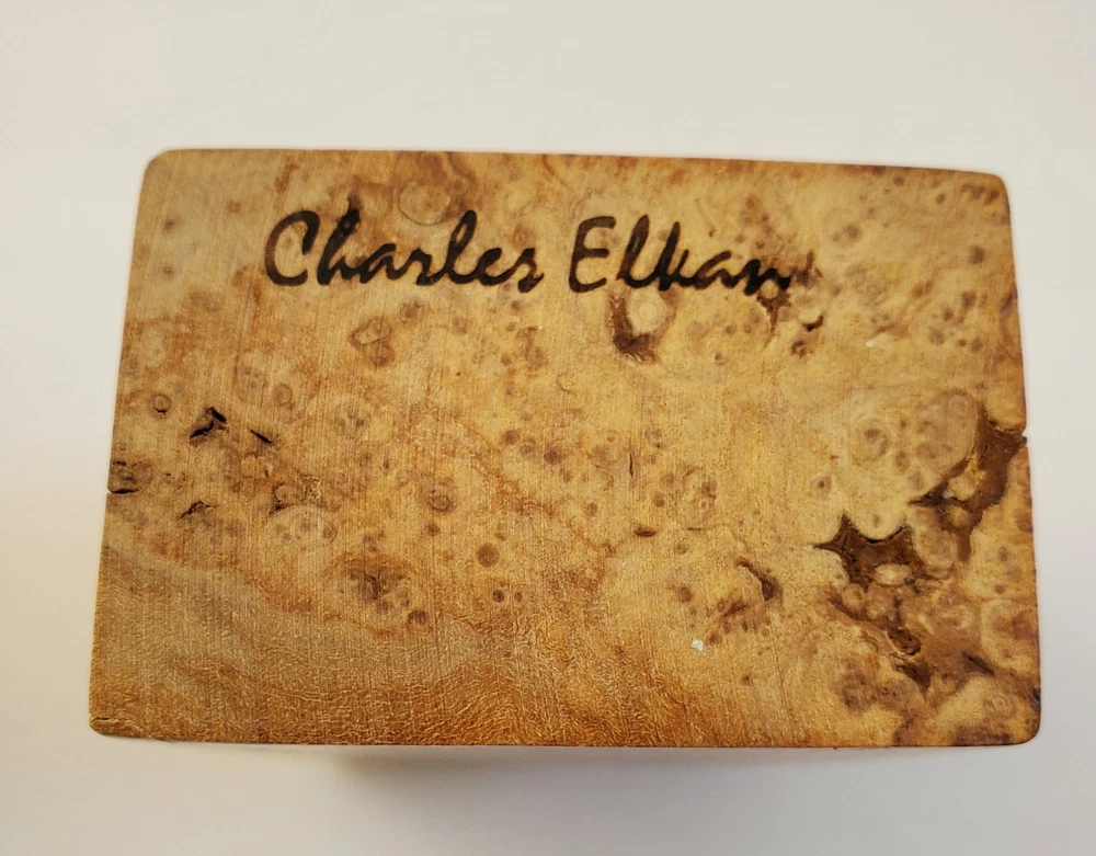 This signed Charles Elkan Maple Burl Wood Clock is a timeless piece that brings a touch of nature's warmth to any setting. The clock features a beautiful maple finish that highlights the intricate burl wood pattern. This desk clock can be placed in any room to add classic charm to your decor. The clock takes a 377, AG4 or LR66 battery. It is in good working order with a new battery already in clock and 3 extra batteries free. Measures 4" tall, 2 3/4" length, 1 3/4" wide.