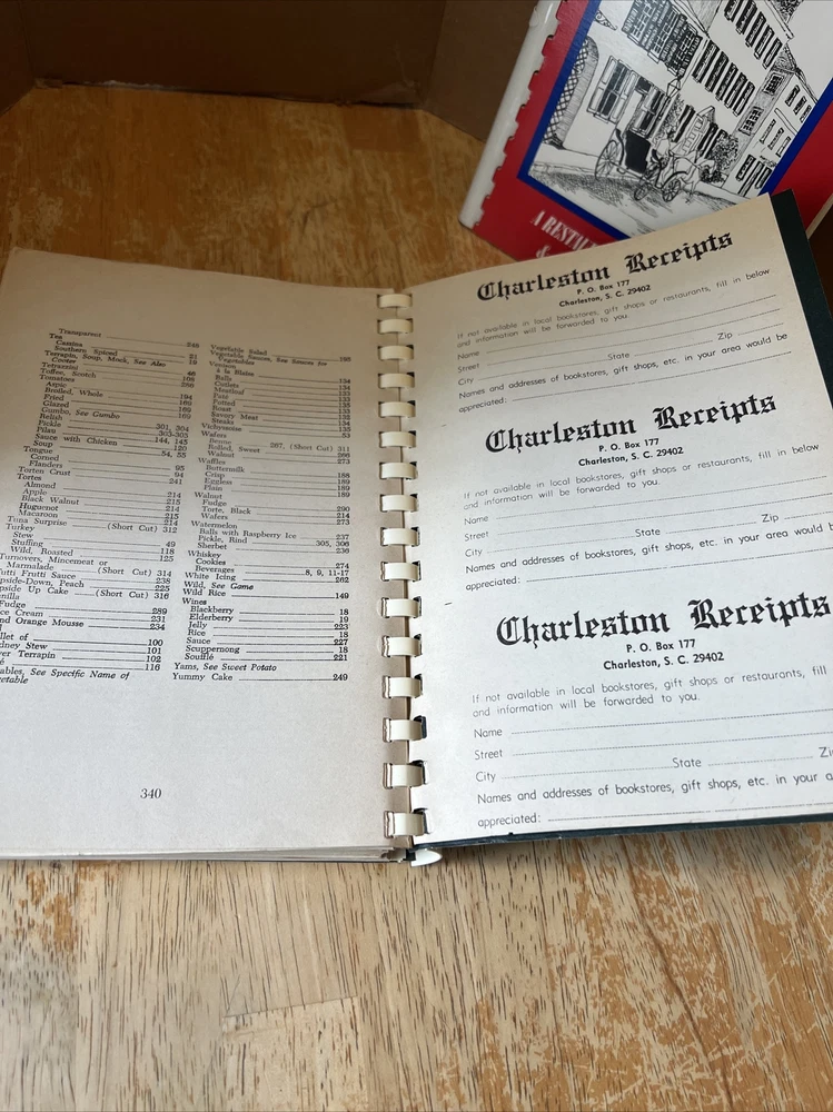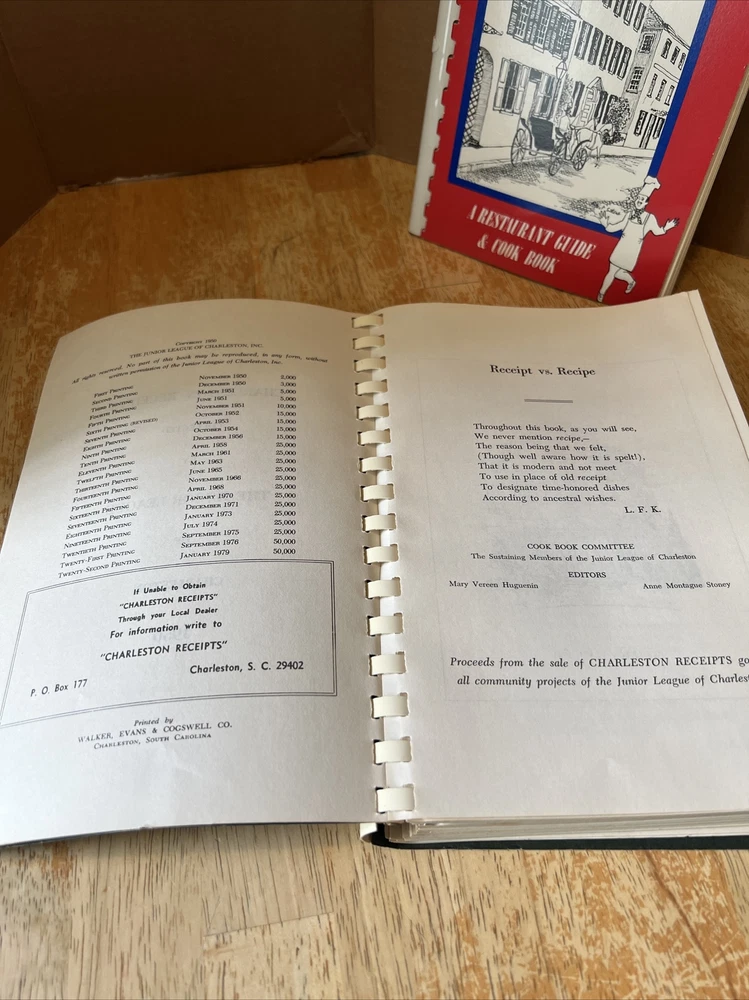 Experience the culinary journey of Charleston, South Carolina, with the 22nd edition of the Charleston Receipts cookbook. This spiral-bound paperback book features 340 pages of mouth-watering recipes that showcase the region's unique flavors and cooking techniques. Discover the secrets of Lowcountry cuisine with A.J. Stoney's extensive collection of recipes, including instructions for preparing delicious seafood dishes. Published by the Junior League of Charleston, South Carolina, Incorporated in 1979, this cookbook is a must-have for any adult who loves to cook and explore the rich cultural heritage of the United States. Also comes with Doin’ The Charleston A Restaurant Guide & Cool Book (has engraving on inside cover) and Carolina Seafood Handbook and Cookbook. Of note: Charleston Receipts has bend in front cover.