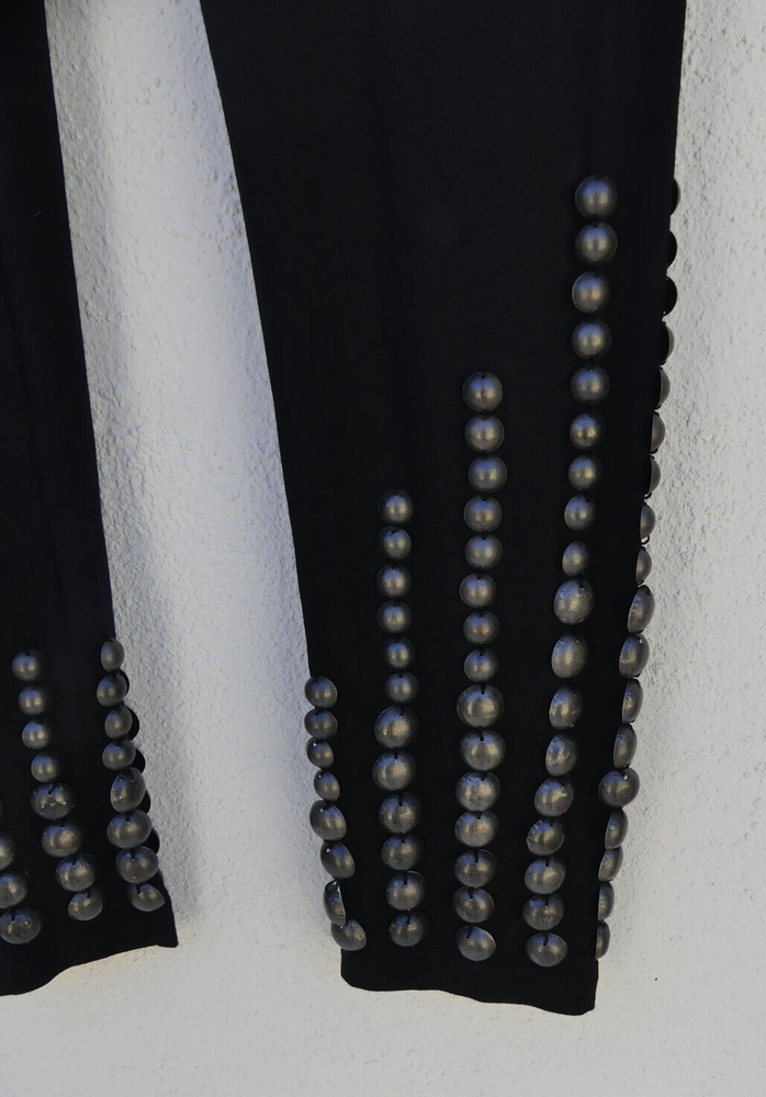 These gorgeous PANTS are a LEGGINGS style. They’re black, in a soft, stretchy fabric and have an elasticated waist. They have dark grey studs on the end of each leg. There are spare studs in a bag on the label, should you ever need them. They are from CHARLIE BROWN and are a size 6, but please check the measurements below, to ensure a good fit. The approximate measurements are: Waist: 54m Length: 97cm Front Rise: 18cm For any other measurements, please use the ‘Contact Seller’ button. They are Brand New, With Tags (rrp $199). Lots more information about these fabulous pants can also be found in Item Specifics. F007 Please take a look at the tons of other gorgeous items I have available in your size! I love to combine postage and save you money! So if you are purchasing more than one item from me, please wait for me to send you a combined invoice, or press the 'Request a Total' button in your Cart before paying. I rate my items in the following way: BNWT / BNWOT: Brand New, With Tags or Brand New, Without Tags (some part of the tag will still be attached). New items that have never been worn. EXCELLENT: has been worn, but shows very few actual signs of wear. GOOD: has been worn and is showing light signs of wear. FAIR: has been worn and is showing more signs of wash/wear - or has a small fault, which will be clearly described in the listing I am only human and can make mistakes in my listings and descriptions - so if for any reason you are unhappy with your purchase, please contact me using the 'Contact Seller' button first, so we can quickly resolve the issue. This item comes from a SMOKE FREE HOME but the odd puppy hair may drift in due to the fact she is my darling shadow throughout the day.