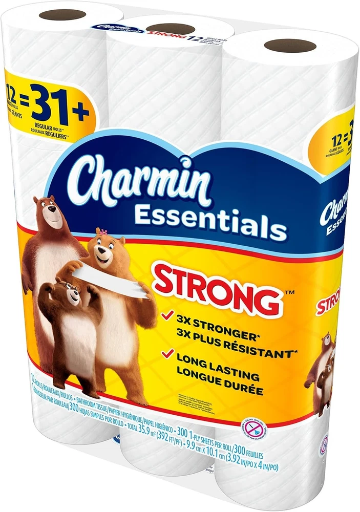 The item was shipped through US Stock, so it arrived faster than expected All items are brand new and unopened, 100% authentic, 24 hours message reply Charmin Essentials Strong Toilet Paper, 1-Ply, Giant Rolls, 48 Count Brand :Charmin Special Feature: Clog Free, Septic Safe Unit Count: 14400 Count Material :Paper Sheet Count: 14400 Ply Rating :1-Ply Recommended Uses For Product :Bath Material Feature: Septic safe Color :Original Version Item Form: paper About this item ack contains 48 Giant Rolls (300 sheets per roll) of Charmin Essentials Strong bulk toilet paper Charmin's strongest 1 ply toilet paper Clog safe and septic safe; Roto Rooter approved 3X stronger when wet vs. the leading bargain brand 1 case contains 48 Giant Rolls for your bulk toilet paper buy