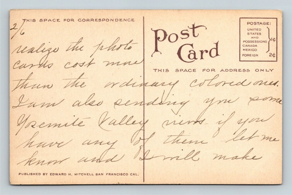 Era: See Postcard Scan Postage Condition: Unposted City/Region: Yosemite Valley Continent: North America Unit of Sale: Single Unit Country: See Postcard Scan Theme: Cities & Towns City: See Postcard Scan Region: See Postcard Scan Subject: See Postcard Scan Original/Licensed Reprint: Original Type: Printed (Lithograph) Circulated: Yes Country/Region of Manufacture: Unknown