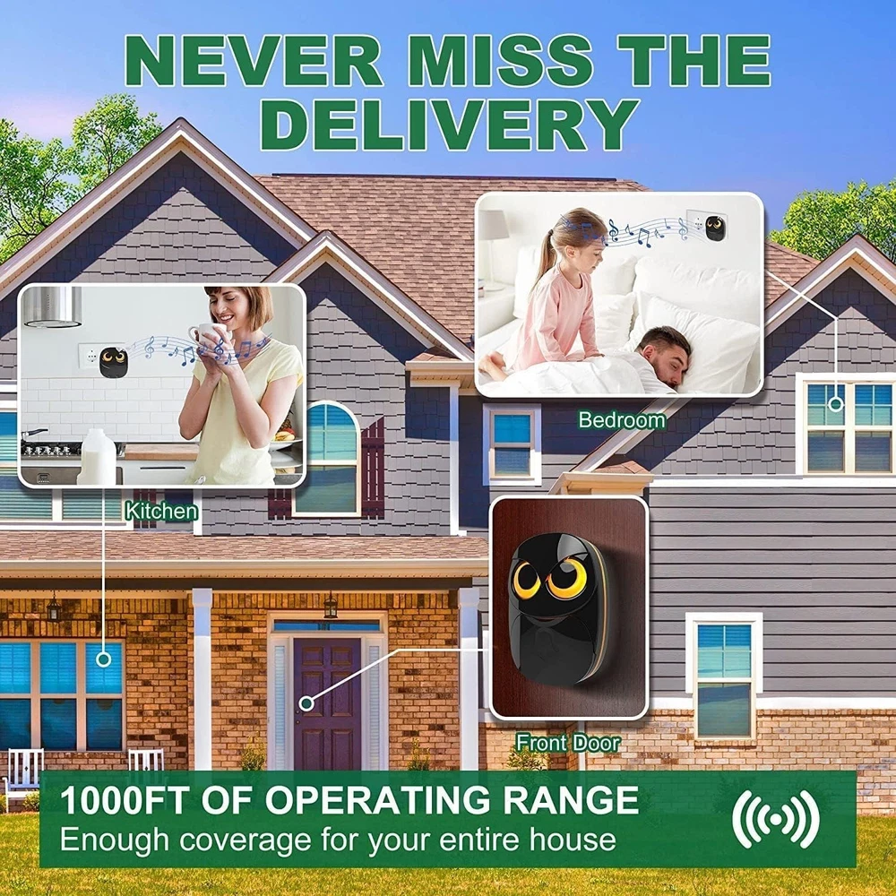 Charming Owl Wireless Doorbell - Weatherproof, Easy Install, 1 Receiver ‹ › ‹ › ‹ › ‹ › ‹ › ‹ › ‹ › ‹ › Charming Owl Wireless Doorbell - Weatherproof - Easy Install - 1 Receiver Key Features: Super Easy to Install: Ready to work right out of the box. Simply plug the doorbell receiver into a socket and mount the doorbell transmitter wherever you desire with included accessories. Weatherproof Transmitter: Rated , ensuring durability against outdoor elements. Wireless range up to 1000 feet (300m), utilizing advanced FSK+FHSS technology to avoid interference from other devices. Smart & Compact Receiver: Features 35 melodies and 5 adjustable volume levels, including a mute mode. Expandable system allows for connection of up to 32 transmitters and unlimited receivers for complete property coverage. Memory Function: Recalls your last settings, including melodies for different transmitters, even during a power outage. Super convenient for a variety of locations - house, apartment, office, classroom, and more. Benefits of Choosing the Charming Owl Wireless Doorbell: Effortless installation ensures you can enjoy your doorbell in no time. Weatherproof design means no worries during rain or snow. Advanced technology guarantees a reliable connection without interference. Customizable melodies for each entry point enhance your home's personality. Convenient memory function saves time and effort in resetting. Why Choose Our Charming Owl Wireless Doorbell? If you're seeking a smart, stylish, and dependable doorbell solution, the Charming Owl Wireless Doorbell is your premier choice. Designed for the modern homeowner, our doorbell combines beauty and functionality with a stunning variety of features. Enjoy peace of mind knowing you can hear your guests, no matter where you are in your home. Transform your entryway experience today by adding charm and security with this elegant doorbell – it's not just a doorbell; it's a statement. Don't wait! Elevate your entrance with a Charming Owl Wireless Doorbell today! Shipping Free & Fast Shipping - We offer free shipping to most of the USA with a normal delivery time of 3-7 days. However, due to the current situation, additional delivery time (up to 3 weeks) may be required for some items. Alternative Carriers - We may use alternative carriers (e.g. USPS, FedEx, UPS, etc.) to ensure your package arrives safely and on time. Due to the use of multiple carriers, we are unable to provide a tracking number automatically. Handling Time - Orders are processed and shipped within 1-2 business days of receiving cleared payment. Shipping Restrictions - Shipping to Alaska, Hawaii, Puerto Rico, Guam, and other US territories may incur shipping charges or delivery restrictions. Please contact us before ordering, or your order can be refunded/cancelled. State Restrictions - There may be restrictions based on your state of purchase. For example, certain items may not be shipped to California due to state regulations. Contact for Tracking Updates - If you require tracking updates or have any concerns about the delivery of your order, please feel free to contact us, and we will be happy to assist you. Return 30-Day Hassle-Free Returns - We want you to be completely satisfied with your purchase. If you are not, you can return the item within 30 days of receiving it for a full refund or exchange. Easy Return Process - To start a return, simply contact us and we will provide you with a prepaid return shipping label and detailed instructions. Restocking Fee - There are no restocking fees for returns. However, the buyer is responsible for return shipping costs if the return is not due to a seller's error. Refund Processing Time - Refunds will be processed within 5 business days of receiving the returned item in its condition. Payment We accept all major credit cards, PayPal, and Apple Pay for your convenience. Your payment information is secure and encrypted to ensure a safe and seamless transaction. Please complete your payment within 3 days of purchase to avoid any delays in shipping. Feedback Your feedback is extremely important to us. We strive to provide the best products and customer service possible. If you are satisfied with your purchase, please take a moment to leave us a positive review. If you have any concerns or issues with your order, please contact us before leaving negative feedback. We are committed to resolving any problems and ensuring your satisfaction. Contact Us If you have any questions or concerns, please feel free to out to our customer support team. You can contact us through the eBay messaging system. We are available Monday to Friday, 9:00 am to 5:00 pm EST, and we will do our best to respond to your inquiry within 24 hours. Buy it now and enjoy a pleasant shopping experience! Voltage: 12V Unit Quantity: 6.7 Ounces Material: Plastic Features: Waterproof,Weatherproof,Smart Receiver,Compact Design,Expandable,Multiple Melodies,Adjustable Volume,Memory Function Power Source: Battery Items Included: Doorbell Receiver,Receiver,Transmitter Suitable For: Home,Apartment,Office,Classroom,Warehouse Type: Wireless Connectivity: Wireless Number of Batteries: 1 Color: Black Finish: Matte Item Weight: 6.7 Ounces Style: Contemporary Button Material: Plastic Button Shape: Rectangle Shape: Rectangle Power: 12W