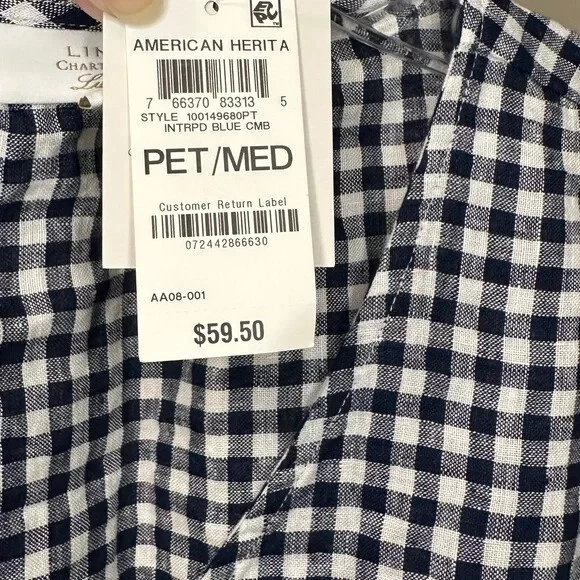 Sz MP Matching Pants Available for Bundle A playful update on timeless plaid, this linen top from Charter Club is punctuated with a soft scarf tie at the front