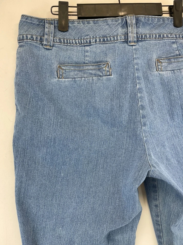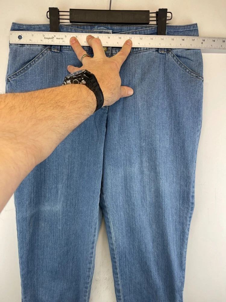Elevate your summer wardrobe with these stylish Charter Club capri pants. Made with a blend of polyester, spandex, and cotton denim, these pants are perfect for any occasion, whether it's a casual day out or a party/cocktail event. The pants feature a flat front and a straight leg style with a high rise of greater than 10.5 inches, providing a comfortable and flattering fit for women's size 14. The pants also come with a variety of features, including stretch for added comfort, and can be easily cared for with machine washable instructions. The solid blue color and bohemian/hipster theme make these pants a great addition to any fashion-forward wardrobe. See photos for measurements of the waist size and make these pants a must-have for any summer, fall, or spring season. Very good preowned condition with normal preowned wear and no issues. Please see all photos. For clothing specifically, see photos for all measurements and/or any issues if applicable. Pay close attention to the measurements as the size of the garment may quite possibly be different than the actual measurement(s) due to washing, shrinkage, or stretching as these are used clothes. The size in the title is the size on the tag of the garment. See photos for measurements of actual measurements as they may differ. ALWAYS CHECK THE MEASUREMENTS IN THE PHOTOS. This will remove any questions on measurements as well as always cover the possibility of human error in the listing(s) in the case of a typo or oversight. All clothing and shoes have been washed/cleaned, and comes from a smoke free environment. If shoe trees appear in the photos, they are for photography purposes only to illustrate how the shoes look filled out, and are not included. I am available for questions. I accept or negotiate reasonable offers. Have an amazing day. Thank you.