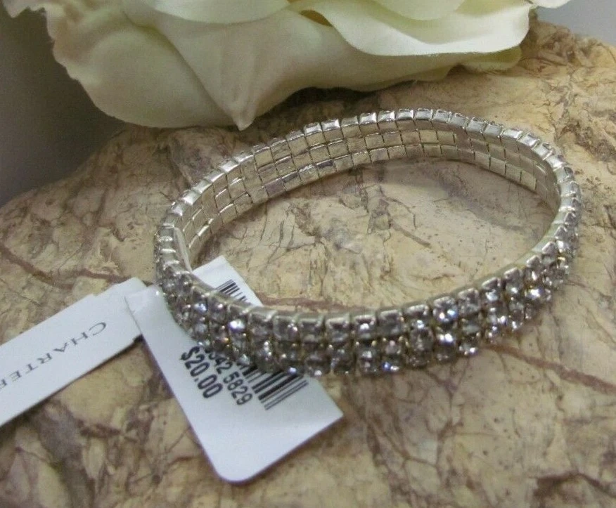 Charter Club Silver Tone Clear Crystal Stretch Bracelet $20.00 New