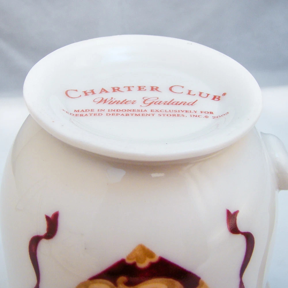 Charter Club WINTER GARLAND Christmas Ornament Accent Mug(s) EXCELLENT Charter Club WINTER GARLAND Christmas Ornament Accent Mug(s) EXCELLENT Click images to enlarge Description Charter Club WINTER GARLAND Christmas Ornament Accent Mug(s) EXCELLENT Manufacturer: Charter Club Pattern: Winter Garland Item: Ornament Accent Mug Measurements: 4" x 3 5/8" Condition: Used Condition Notes: Used, excellent Payment Paypal Shipping Domestic shipping: Fixed Shipping Charges. International shipping: Fixed Shipping Charges. Shipping Carrier Domestic International Shipping Locations Usps First-Class $0.00 - - Usps Priority $10.00 - - Usps First-Class Intl - $25.00 Worldwide I will ship to: United States, Worldwide Vendio Images: More than just a pretty image. 250+ Mobile Responsive & Active Content Free Listing Templates with Vendio Sales Manager. Vendio provides powerful selling automation for sellers of all sizes. Get business information that counts! - Vendio Counters are active content free.