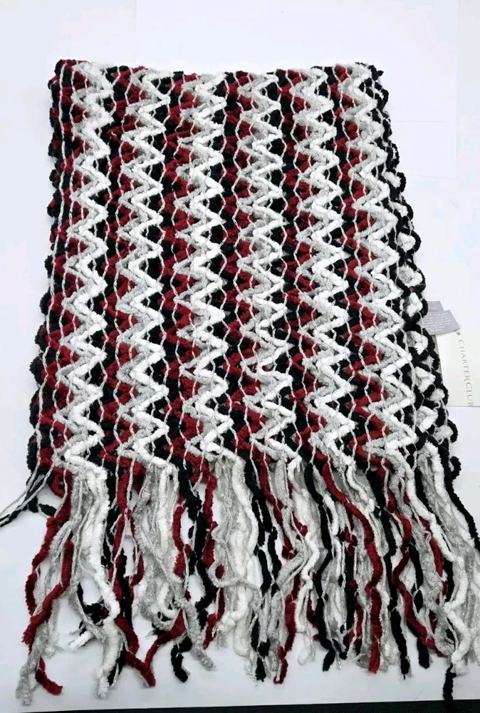 NEW Charter Club Cherry Super Soft Chenille Zigzag Weave Fringed Women's Scarf NWT Timeless and Stylish Design Makes a Great Gift! Features Loose Knit ZigZag Pattern with Metallic Detail Charter Club is a Private Label of Macy's New with Tags - Retail $42.00 Scarf Measures Approximately 12" x 64"Fringe at Ends 98% Acrylic, 2% Other Fiber; machine wash cold Disclaimer: Product color may vary slightly due to your monitor settings.