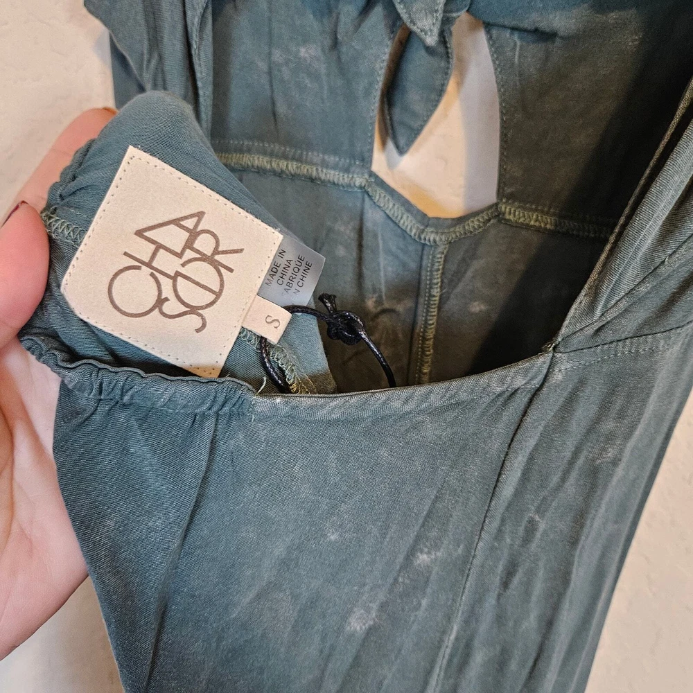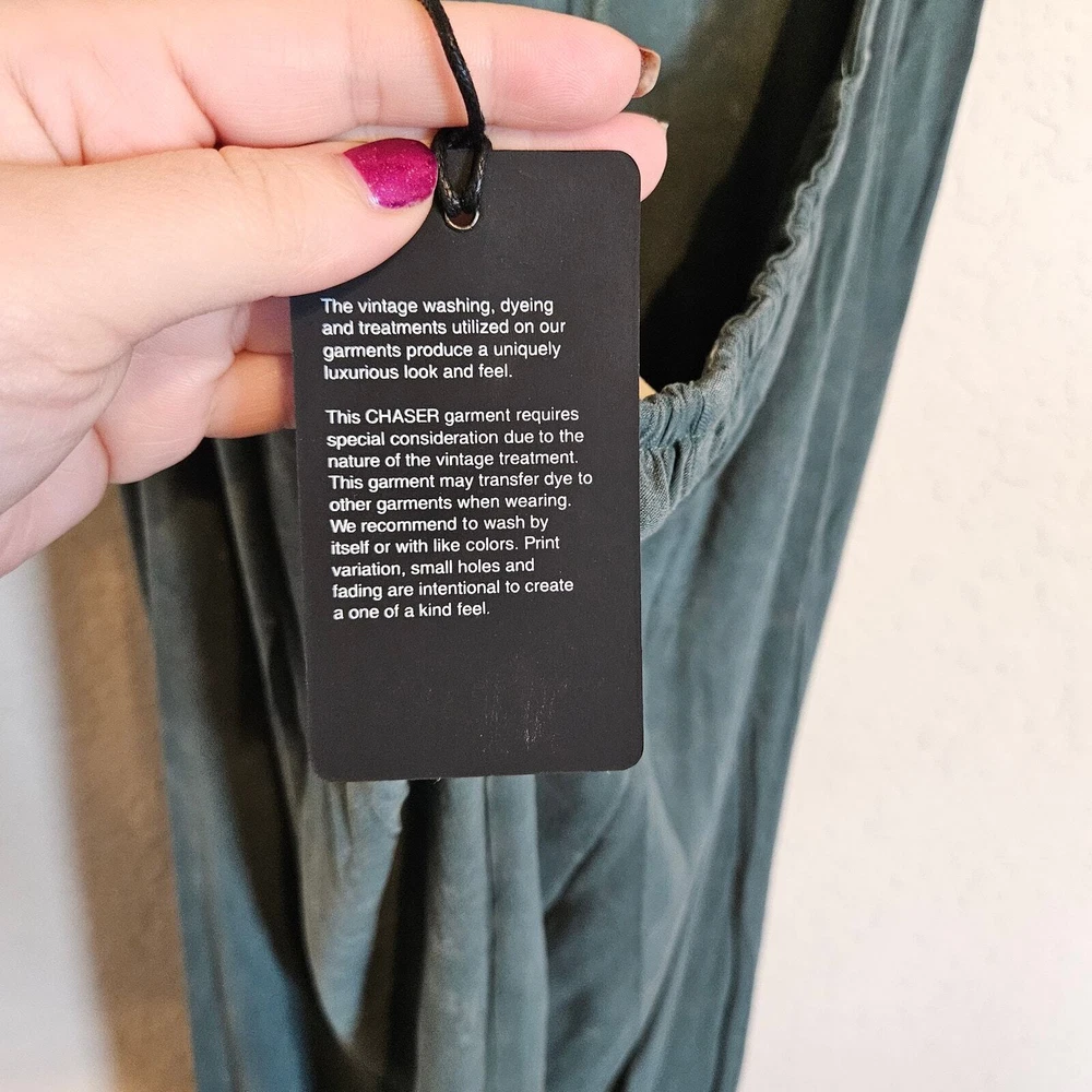 Chaser Green Open Back Spaghetti Strap Maxi Dress Spaghetti strap Adjustable strap Ties between the bust Cutout in the front A little bit of smocking at the back Open Back Slight high low hem Mineral wash Viscose Spandex Size S Small Approximate Measurements: pit to pit - 14.5" across waist - 13" hips - 17" length - 57 - 59" New with tags, no flaws. Smoke free, dog friendly home. classy trendy spring summer vacation weekend day off moss earth tone boho chic festival