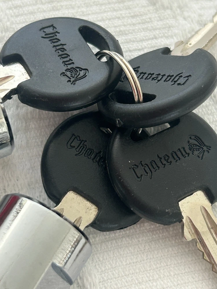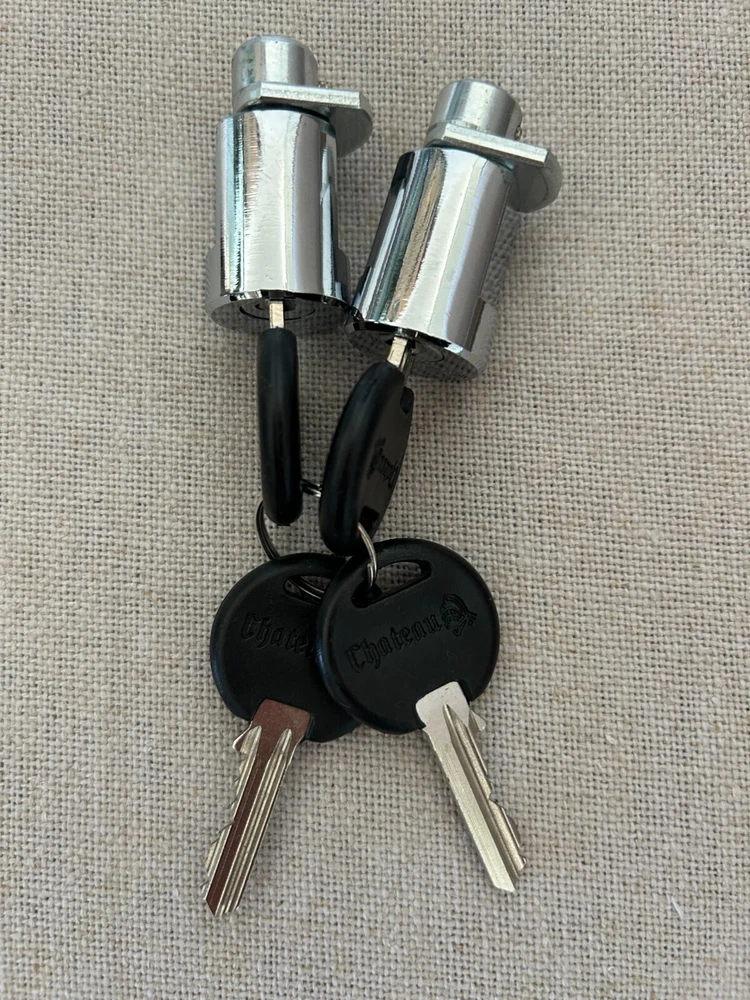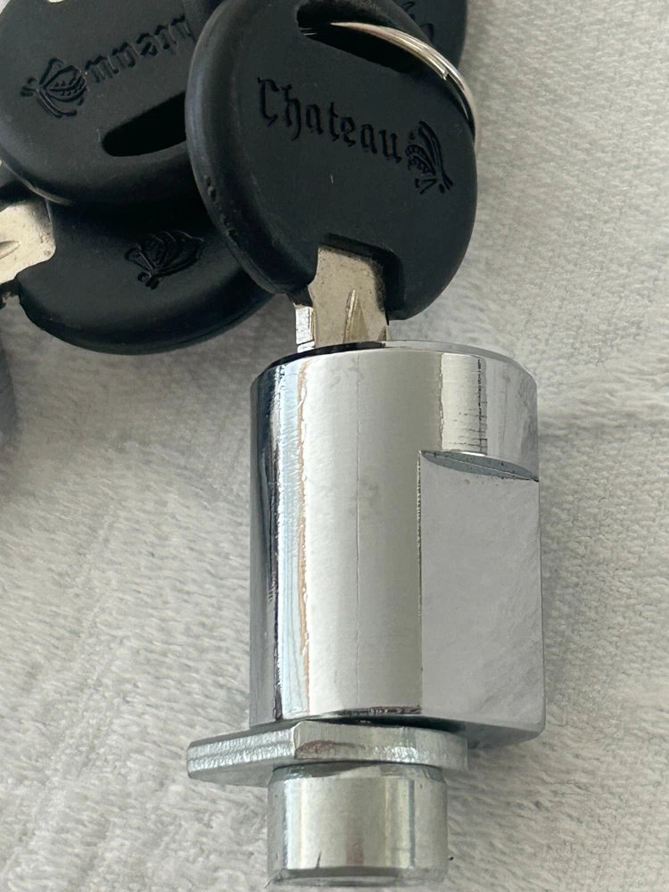 Chateau key & lock set. File Cabinet Lock Set - 2 Keys Per Set. Dimensions/Size of key and lock are not exact.