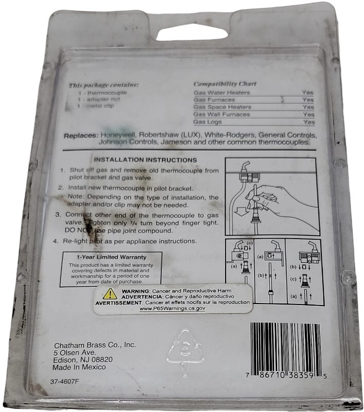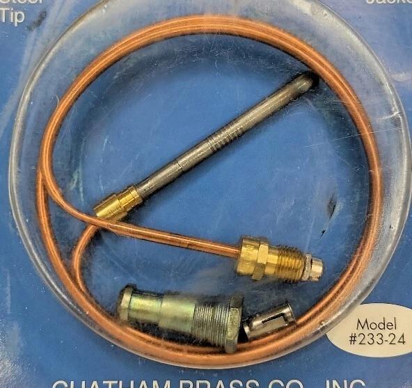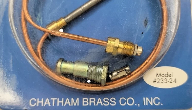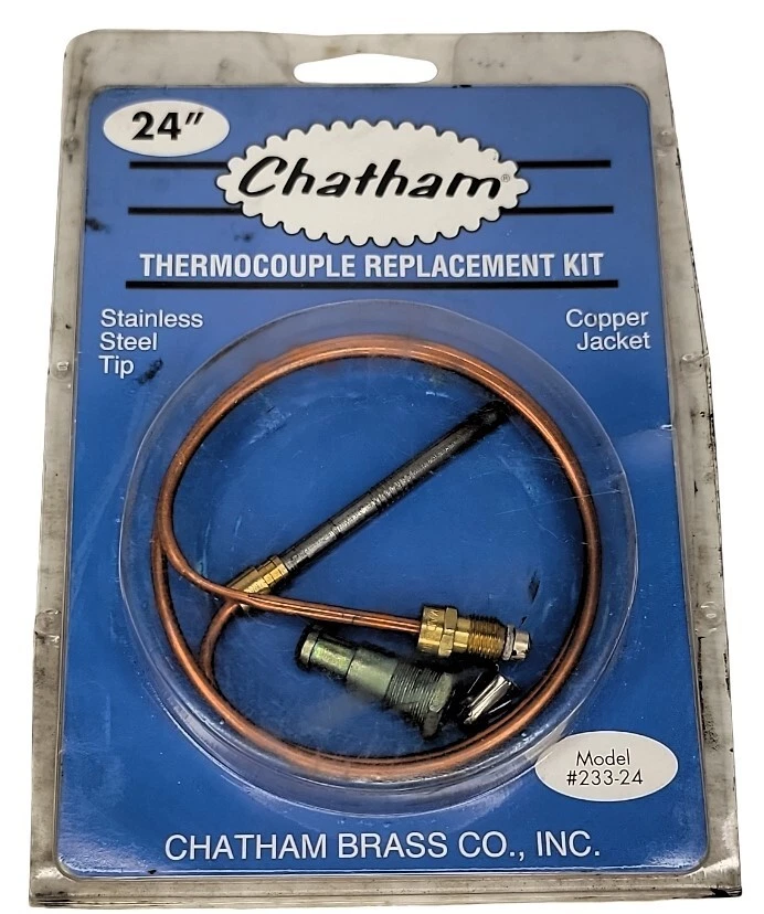 Chatham 24" Thermocouple Replacement Kit Model #233-24 New in Package This Chatham 24" Thermocouple Replacement Kit Model #233-24 is a must-have for anyone in need of heating, cooling, and air replacement. Made in the United States, this kit is designed to ensure your system is running smoothly and efficiently. With a unit quantity of 1, this kit is the perfect solution for those looking to upgrade their current kit. The kit includes all the necessary components for easy installation and is branded by Chatham, a trusted name in the industry. This item is ideal for those looking to replace their current thermocouple and is a great addition to any home improvement project.